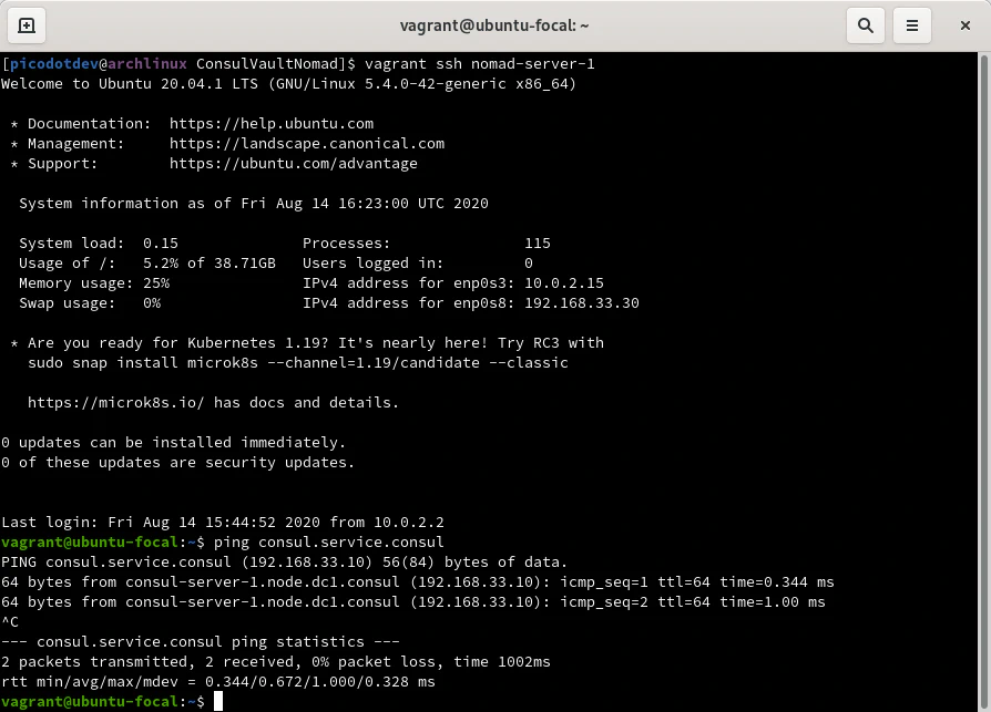 - El cliente de Nomad utiliza la dirección IP 192.168.33.40