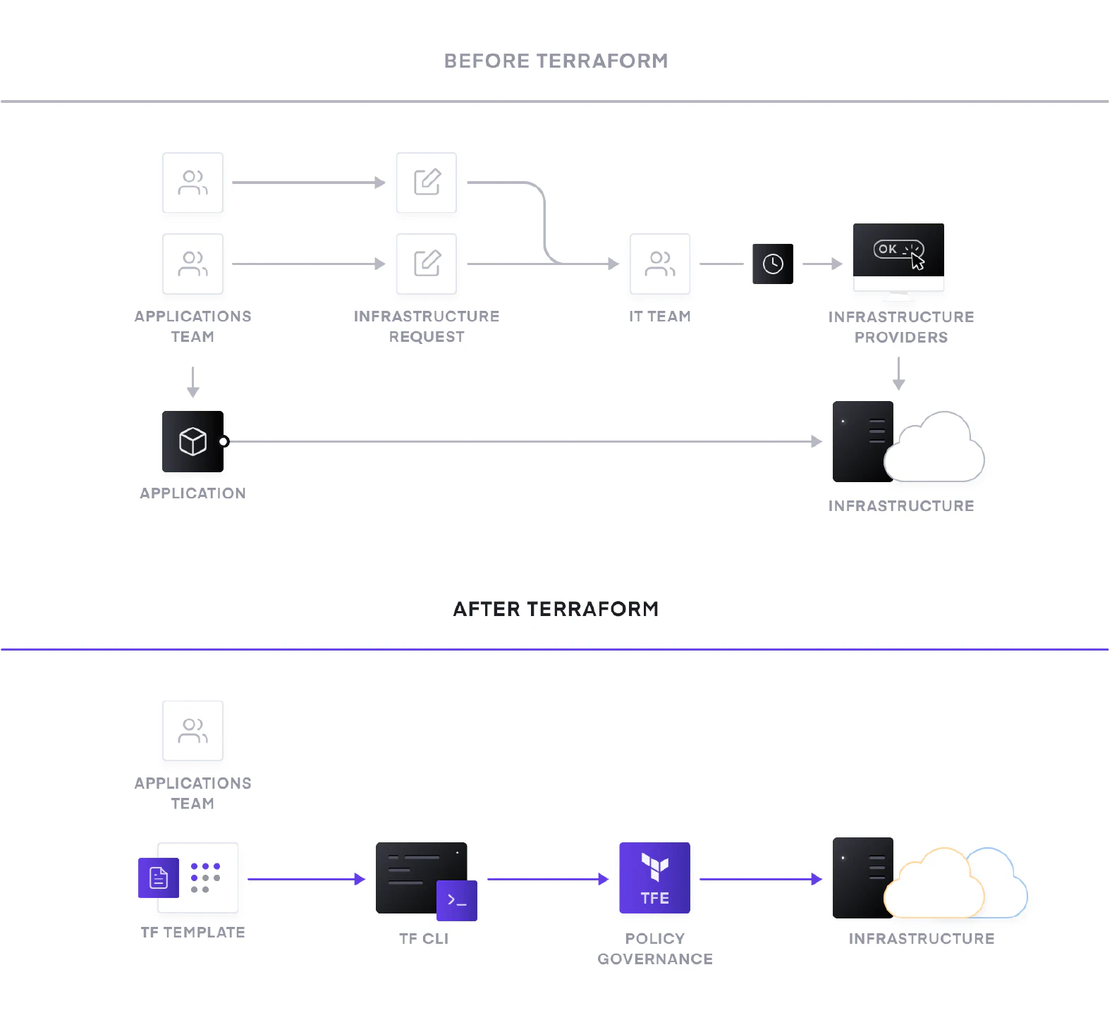 Cada uno de estos entornos de computación tiene sus peculiaridades, Terraform permite describir las necesidades de sistemas en cuanto a infraestructura del entorno de ejecución de forma independiente a cada uno de estos proveedores, automatizar el aprovisionamiento y definir la infraestructura como código lo que permite guardar en un repositorio de control de versiones los cambios que se realizan a la infraestructura.