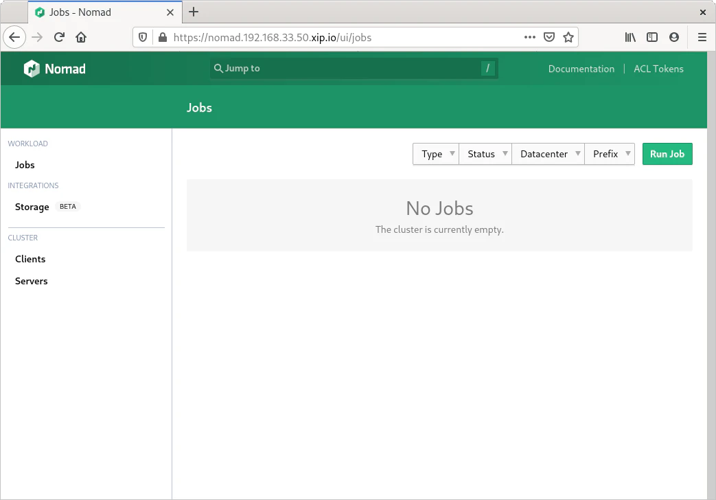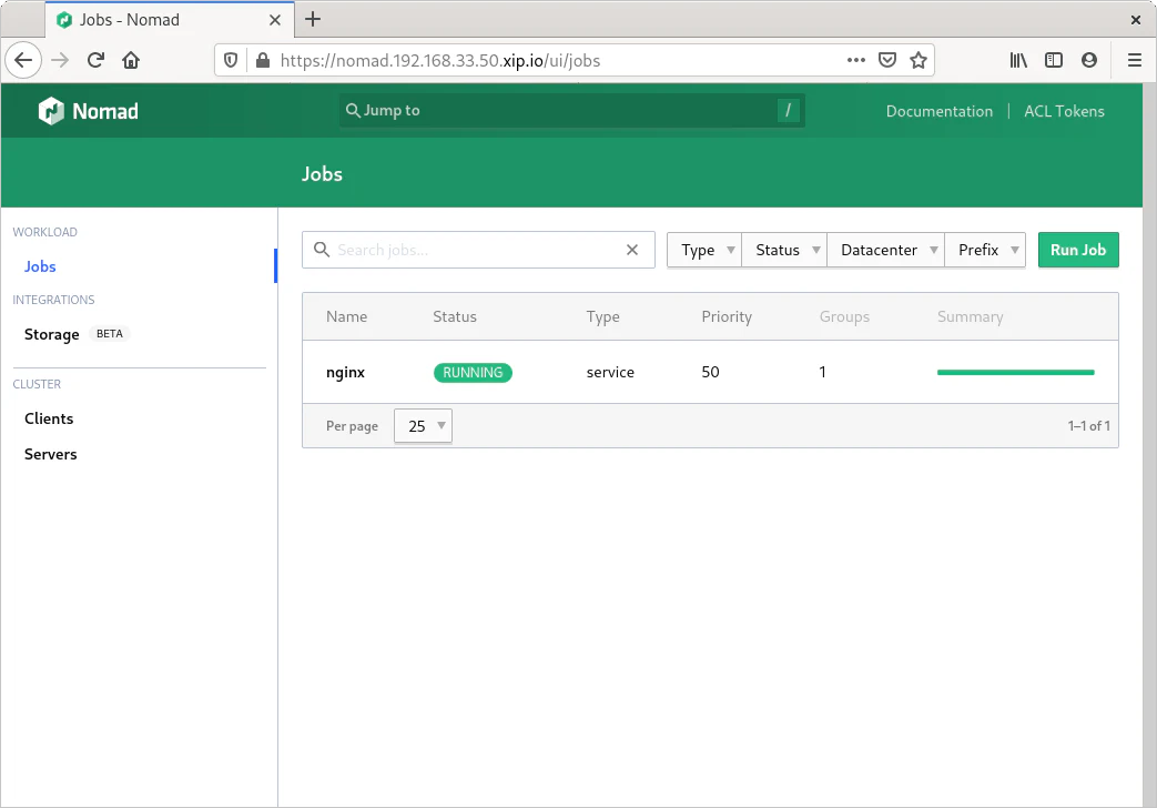 - Dirección, usuario y contraseña de consola web Nomad: https://nomad.192.168.33.50.xip.io, nomad y nomad.