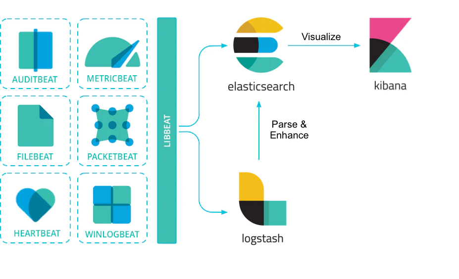 Cada aplicación que emite trazas necesita tener un recolector de trazas asociado que permite enviarlas a Elasticsearch para su indexación y almacenamiento. Logstash es una herramienta pesada como para incluirla en cada máquina donde se instancian los servicios, por ello la propia empresa Elasticsearch ha desarrollado herramientas más ligeras, Beats, compuestas de varias herramientas como por ejemplo para archivos de log, métricas, de red o de actividad entre algunos otros.