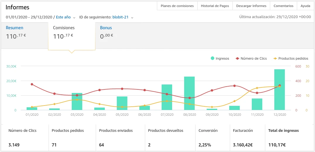 Por insertar un enlace contextual relevante para el contenido he recibido el pago de 20 €, de otros dos enlaces en otros dos artículos a razón de otros 20 € por enlace con un total de 40 € que inserté hace un par de años y que con cierto esfuerzo e insistencia por mi parte he conseguido finalmente cobrar con satisfacción. Por AdSense este 2020 he recibido 250 € y por Amazon con una facturación de 3160 € que les he generado a través de los enlaces que incluyo he recibido 110 €. En total unos 410 € de este 2020, cuando en el 2019 solo por AdSense fueron de 415 €, que me dará para comprar algún juego de la PlayStation y para hacer una donación a varios proyectos de software libre que uso o me parecen importantes. Me gustaría saber para comparar cuántos ingresos generan por publicidad algunos youtubers con un canal medio o pequeño con unos 10K, 5K y 1K suscriptores.