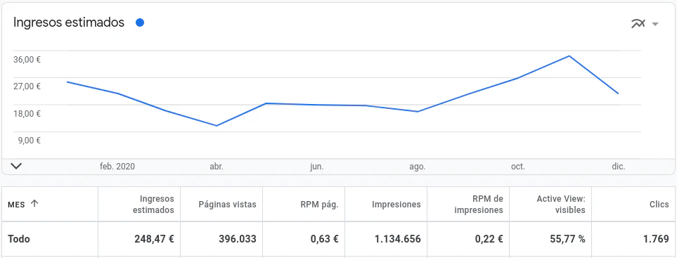 Recibir esos ingresos durante el 2020 es la parte buena, en este año especial han sido significativamente menores a los de años anteriores al menos por AdSense, la otra parte como digo es que para eso ha hecho falta una constancia de 7 años en los que he escrito casi 550 artículos a razón de entre 4 y 8+ horas por artículo, algunas semanas escribiendo dos artículos y otras cuantas horas más para pensar y organizar ideas de nuevos artículos.