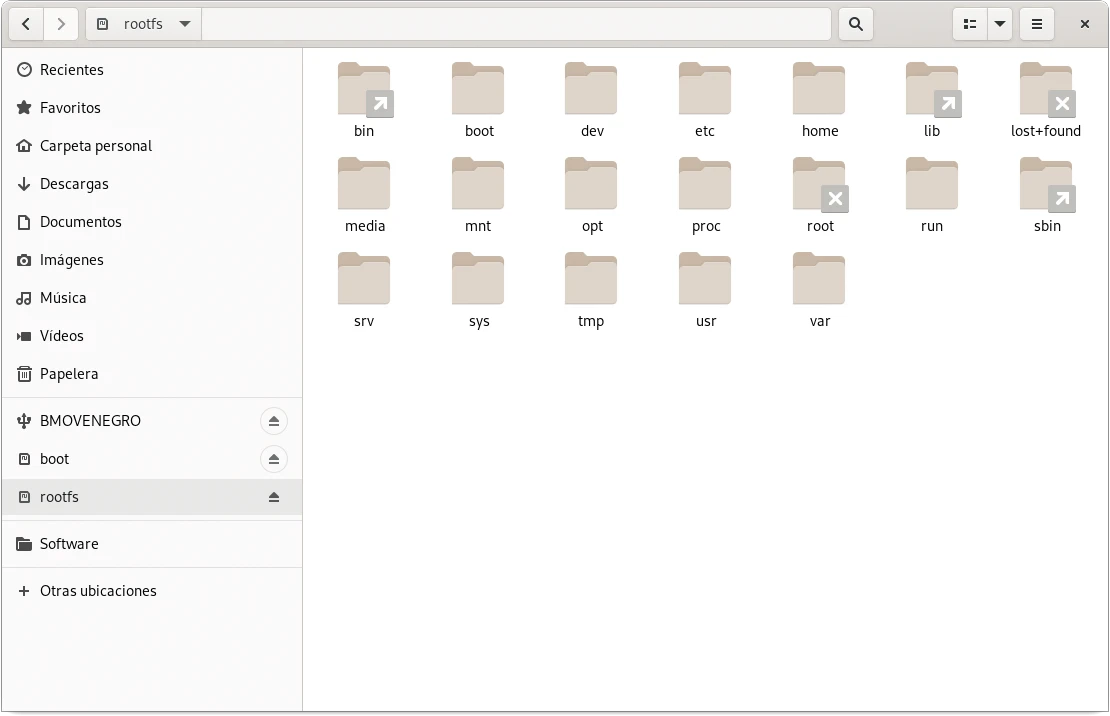 La aplicación Raspberry Pi Image es muy sencilla, basta seleccionar la versión de la Raspberry Pi OS, insertar la tarjeta SD, seleccionar la unidad de la tarjeta SD y proceder a la instalación que se completa en unos pocos minutos. En la tarjeta SD se crean dos particiones, la de arranque o boot y la raíz o root.