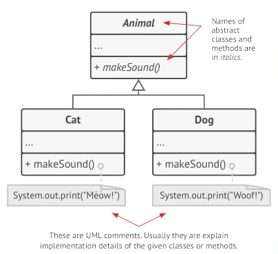 En una jerarquía de clases que representen diferentes figuras geométricas dos operaciones son el cálculo del área y de la longitud del perímetro. La fórmula matemática depende de la clase de figura. En el caso de un cuadrado y de un círculo las fórmulas para el cálculo del área y perímetro son distintas.