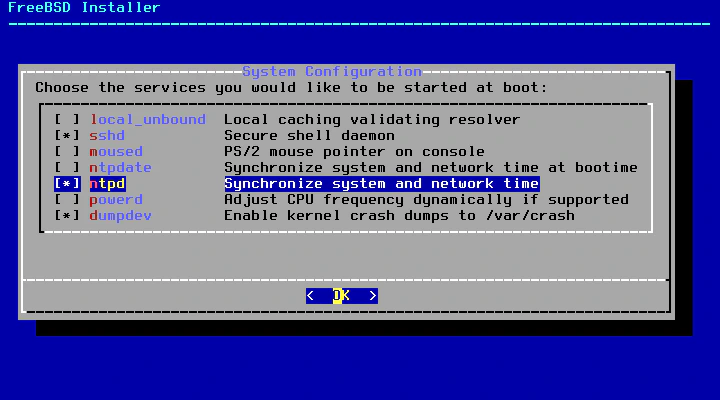 A continuación se sigue con la configuración básica del sistema para la conectividad de red, usuarios, fecha y servicios demonio.