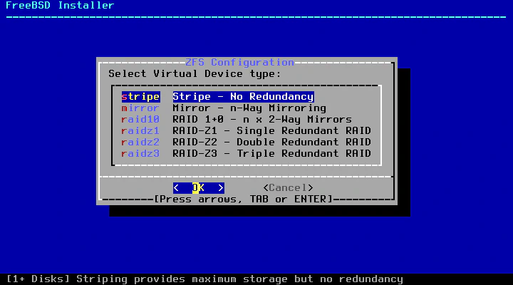 Una de las opciones como sistema de archivos es la posibilidad de utilizar ZFS. La licencia BSD permite utilizar más fácilmente el avanzado sistema de archivos ZFS desarrollado originalmente por la difunta Sun Microsystems.