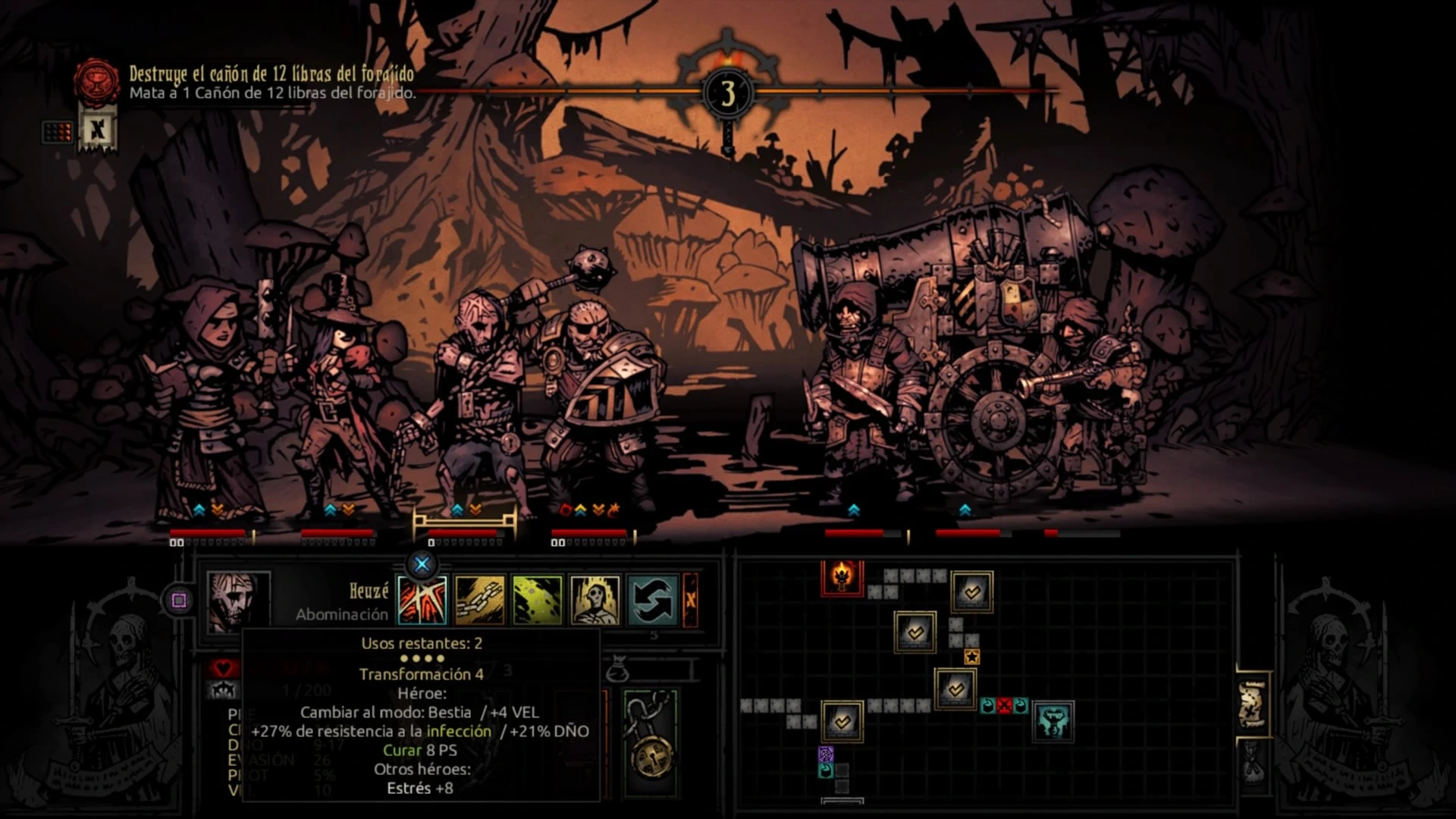 - Héroes recomendados para la foresta: Ocultista, Bufón, Abominación, Hombre de armas, Bandolero, Leproso, Maestro canino, Caza recompensas, Diabla, Arbalestera.