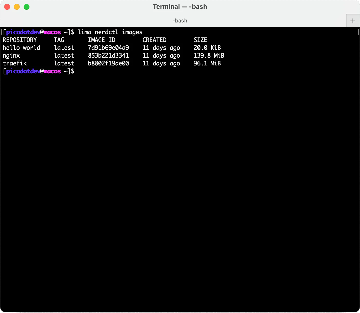 Lima como entorno de ejecución de contenedores utiliza containerd, pero dado que las imágenes de los contenedores de Docker de DockerHub siguen el estándar OCI son compatibles con containerd lo que permite usar exactamente las mismas imágenes.