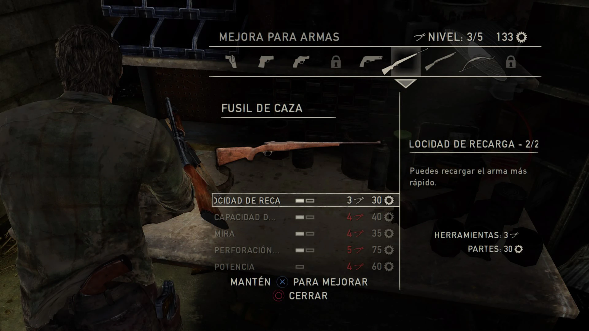 Por una parte está que los recursos que se recogen son limitados, al mismo tiempo otra parte es que la capacidad del inventario de los personajes también es limitado con lo que a veces ocurre que no es posible recoger recursos por tener el inventario completo. Los personajes, principalmente Joel, y las armas tienen la opción de ser mejorados con píldoras y componentes dotando al juego de una pequeña forma de personalizar los personajes según las preferencias que habitualmente es una faceta que gusta en los juegos. No hay píldoras y componentes para mejorar todas las armas por completo al menos en la primera finalización del juego aún encontrando todos los recursos.