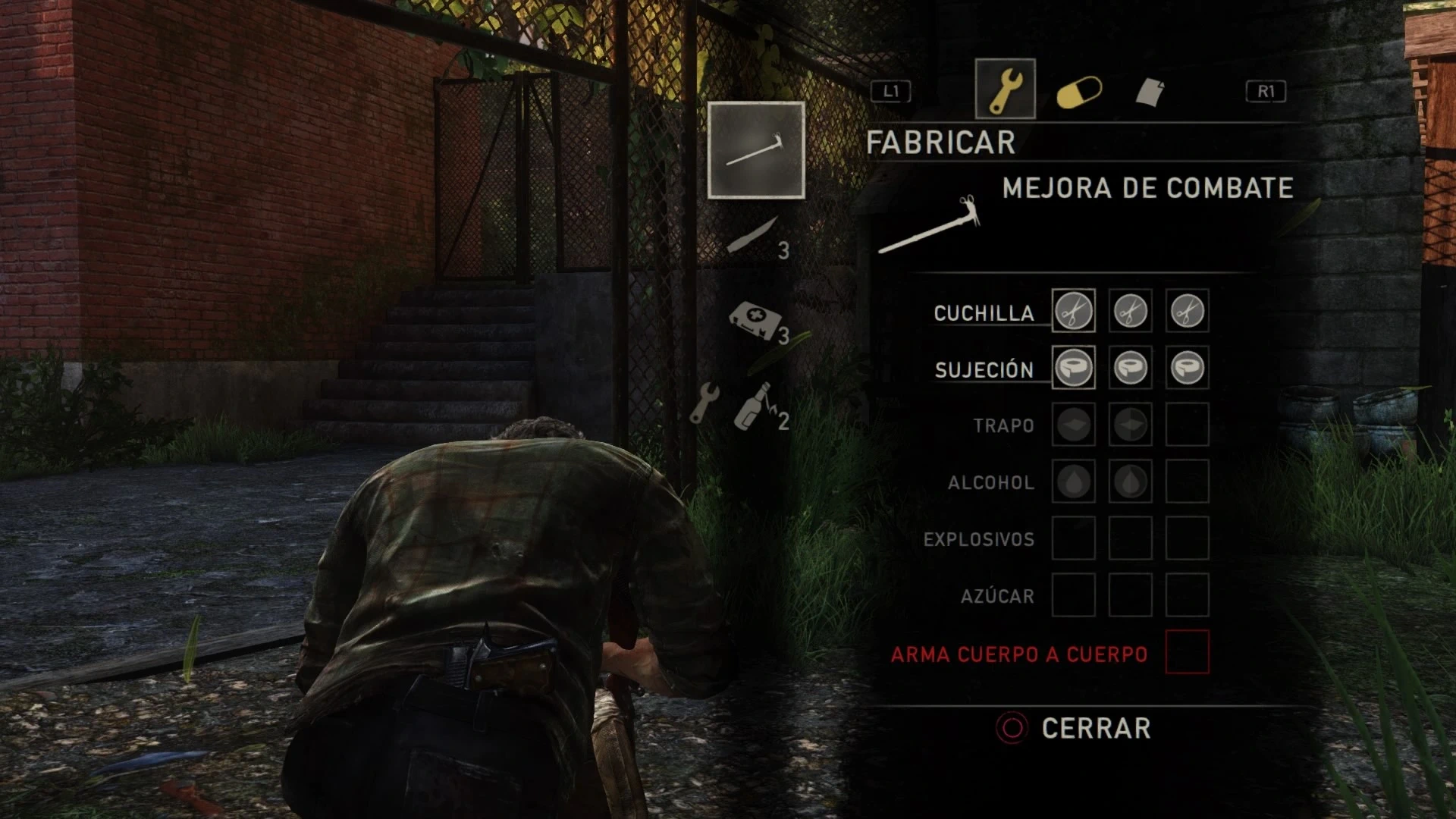 En cuanto a recursos de equipo hay varios elementos básicos como tijeras, sujeción o cinta, trapos, alcohol, explosivos y azúcar. Con estos recursos básicos es posible fabricar diferentes objetos como dagas, botiquines de curación, cócteles molotov, explosivos o mejorar el arma cuerpo a cuerpo. Fabricar una unidad de cada uno de los objetos requiere una combinación de dos recursos básicos.