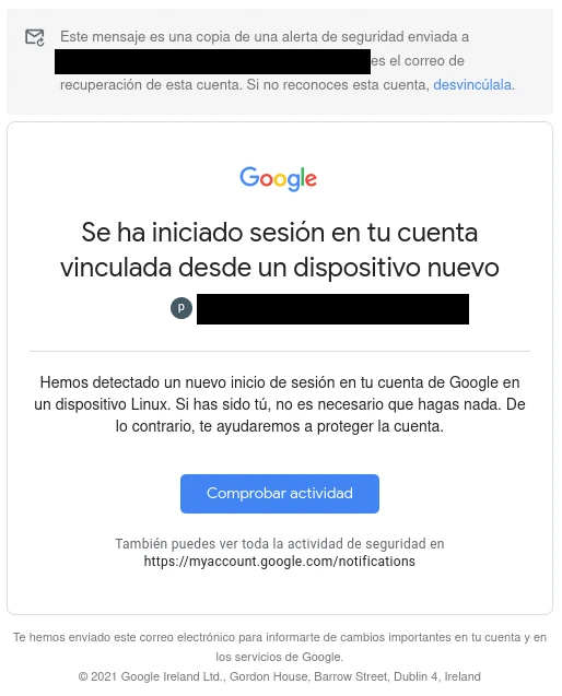 Estos son dos ejemplos de correos electrónicos que envía Gmail y Wallapop para notificar al usuario de un nuevo inicio de sesión en su cuenta.