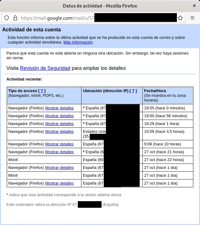 Mantener un registro de la actividad es otra variante para dar visibilidad y permitirle al usuario identificar actividad fraudulenta en su cuenta en caso de que haya sido víctima de un ataque o sus credenciales hayan sido robadas. Algunos servicios mantienen un registro con las fechas de los últimos inicios de sesión, la dirección IP de la computadora junto con su geolocalización que permite conocer su ubicación aproximada, el navegador usado, sistema operativo o fecha de últimos cambios de contraseña.