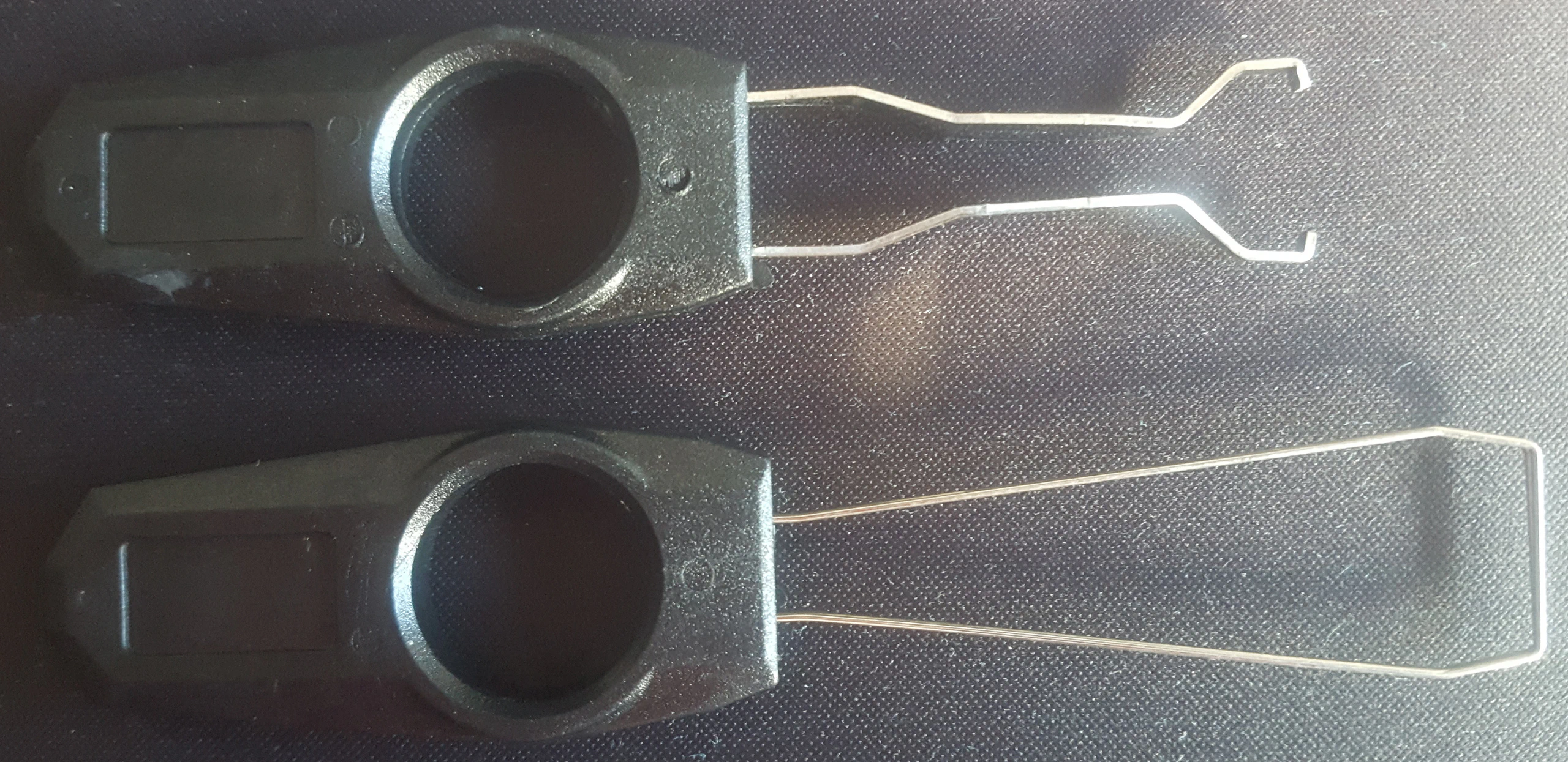 Comparando un switch óptico y eléctrico se observan claramente las diferencias físicas entre ambos en el tipo de conexión al teclado, el óptico no tiene las patillas metálicas en la parte inferior.