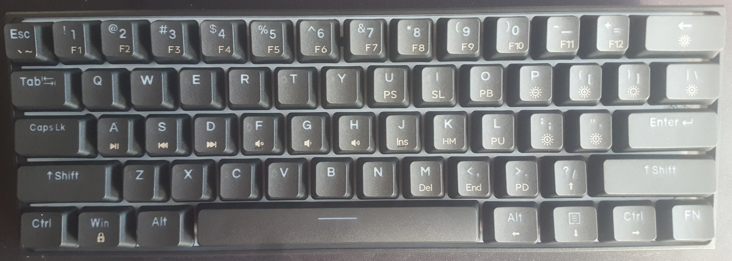 Al ser un teclado compacto de 60% hace que ocupe poco espacio, pesa poco y sea fácilmente transportable, por el contrario prescindir de varias teclas dedicadas hace que esas de las que se prescinde requiera usar una combinación de teclas. El teclado posee las mismas teclas que un teclado completo o TKL pero algunas han de usarse en combinación con la tecla de función.