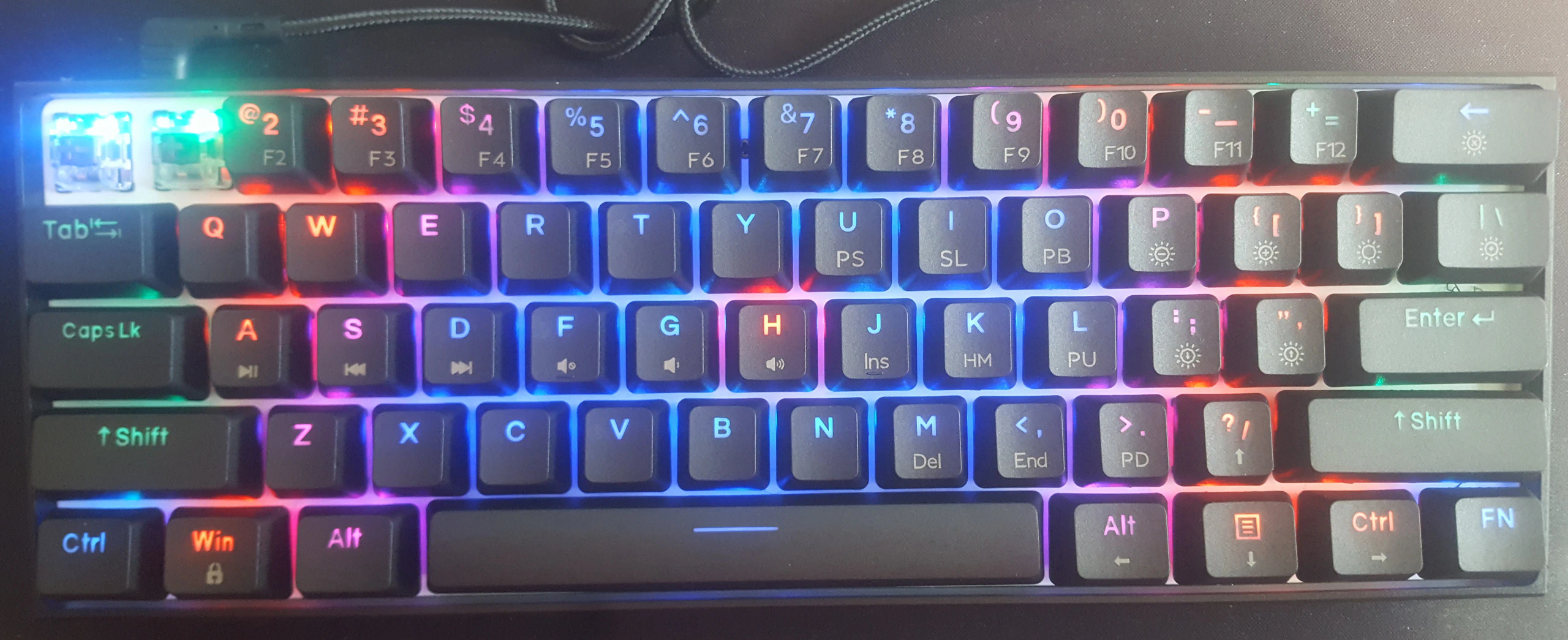 - Formato teclado 60%, 61 teclas.