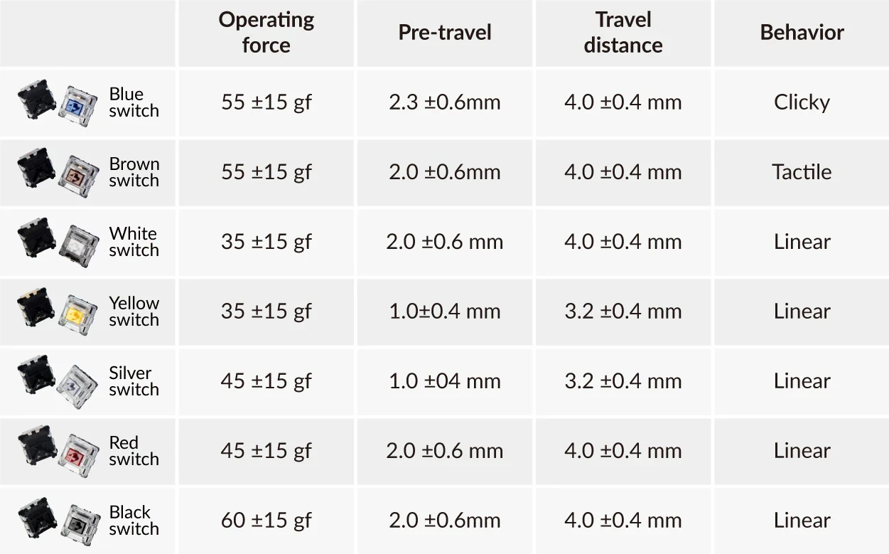 Las personas que el uso principal del teclado es dedicado a escribir suelen preferir los switches de tipo táctil o clicky aunque estos últimos suelen ser percibidos como bastante ruidosos y molestos para otras personas en la misma estancia. Los usuarios que usan el teclado para juegos o son gamers suelen preferir los switches de tipo lineales, aunque en mi experiencia los táctiles de Gateron y Cherry MX brown apenas se notan como táctiles.