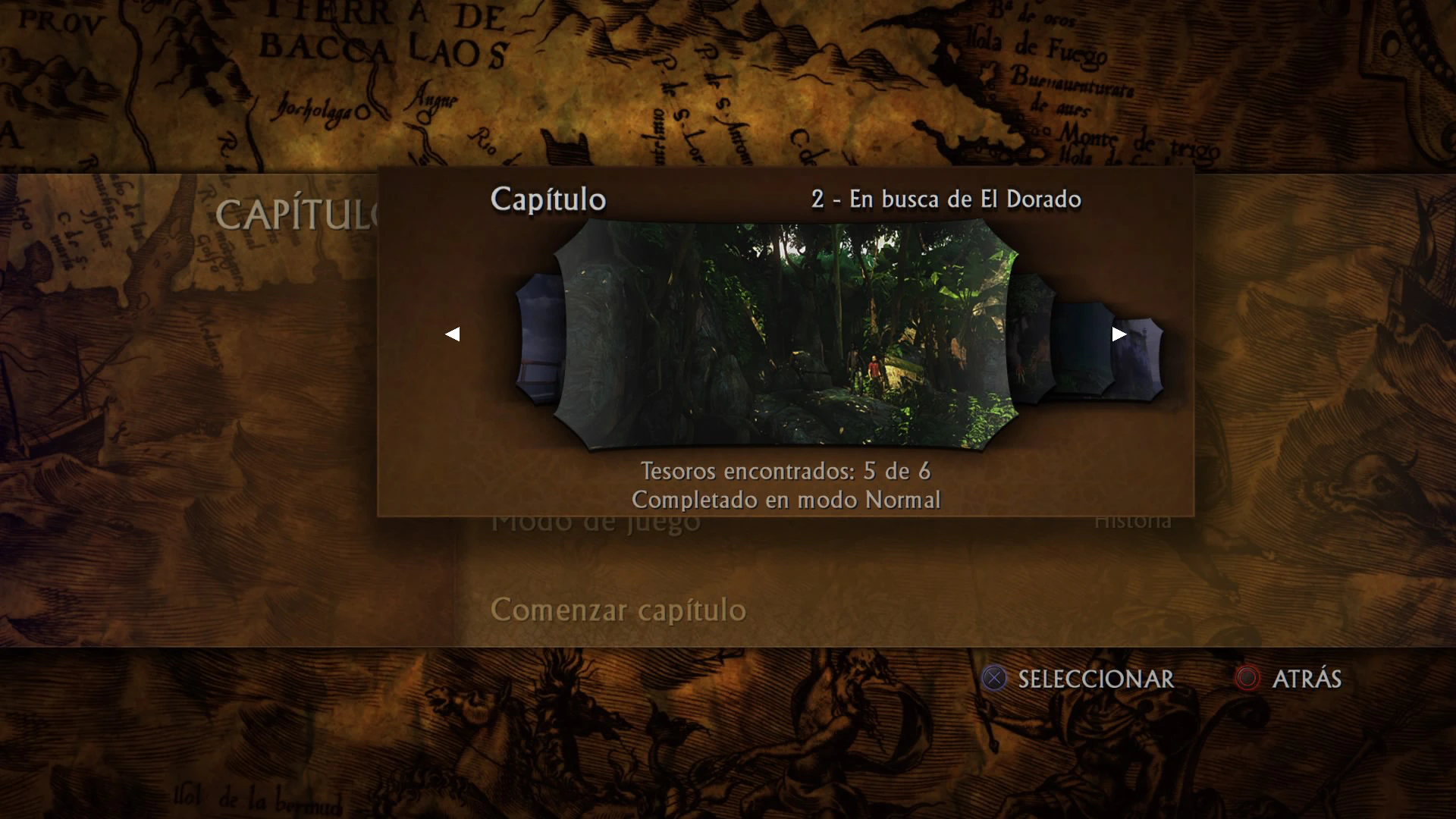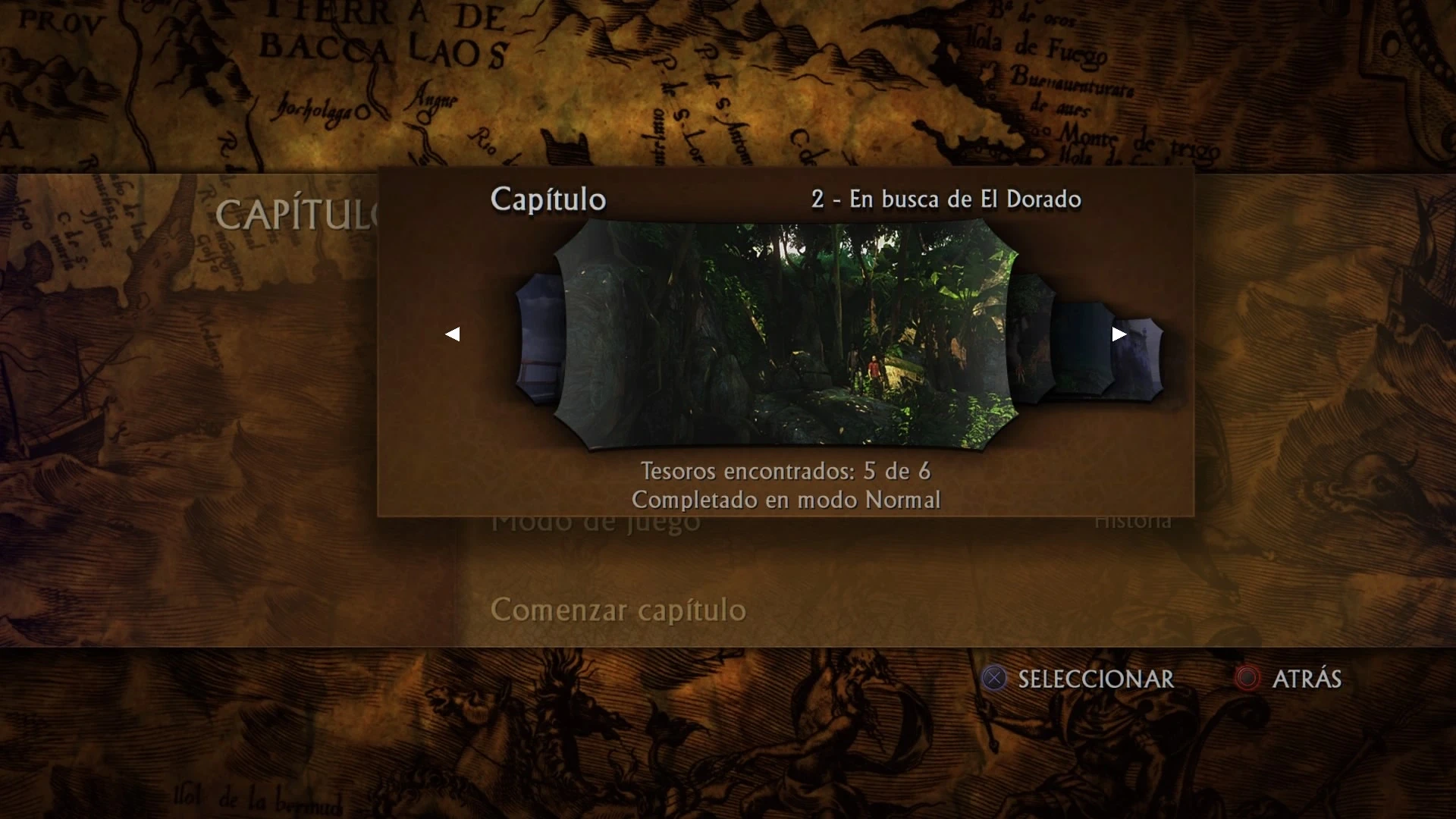 Una vez completado un capítulo este se puede repetir en otro modo de dificultad, también se muestran cuantos tesoros se han encontrado y cuantos hay en total. También se pueden volver a reproducir las escenas cinemáticas. En muchas ocasiones durante los capítulos se incluyen breves secuencias cinemáticas como parte de la historia del juego.