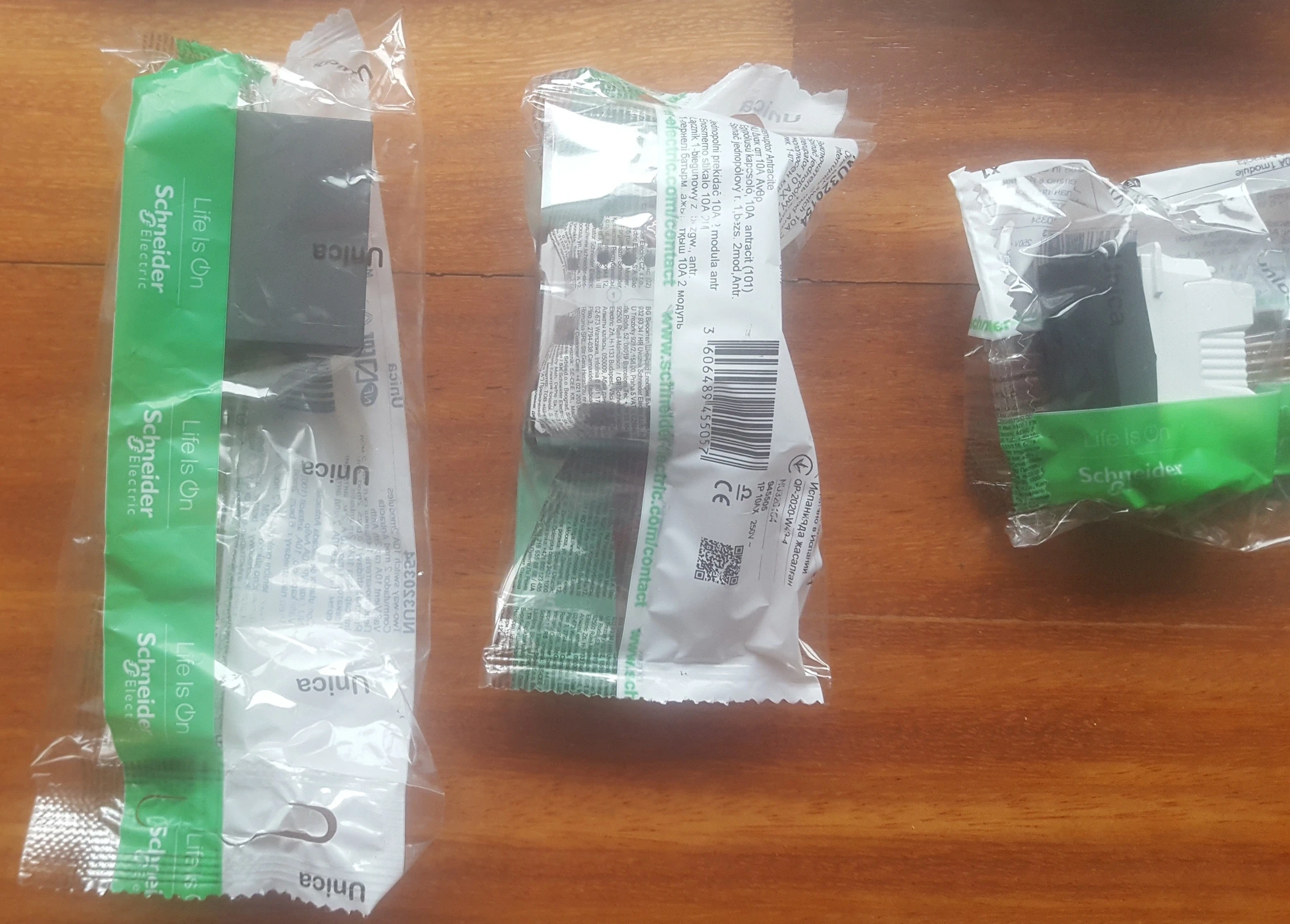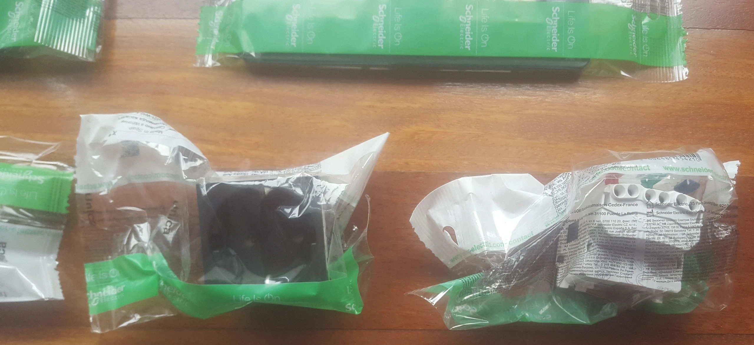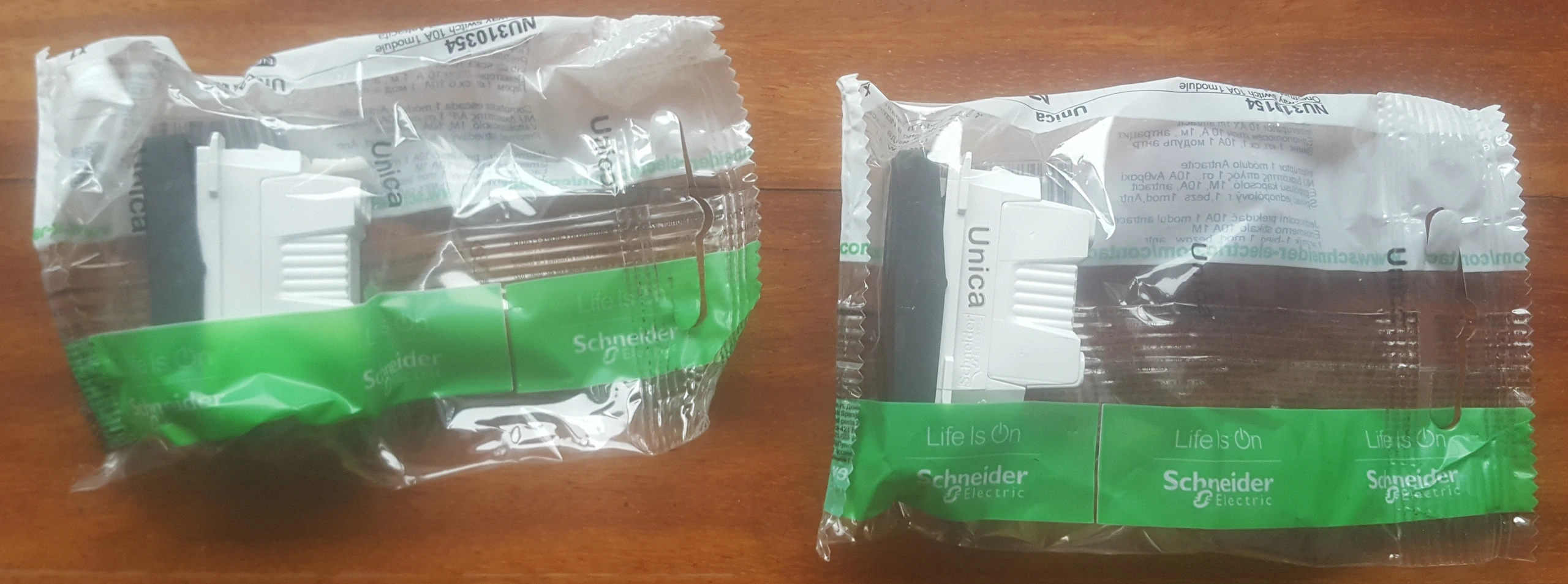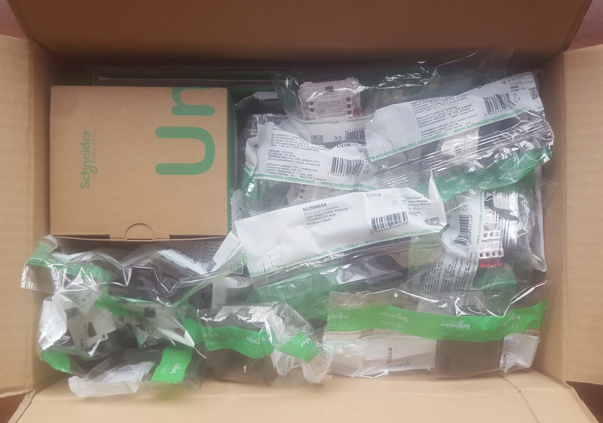 Mecanismos eléctricos, interruptores, enchufes y desempaquetado Schneider New Unica