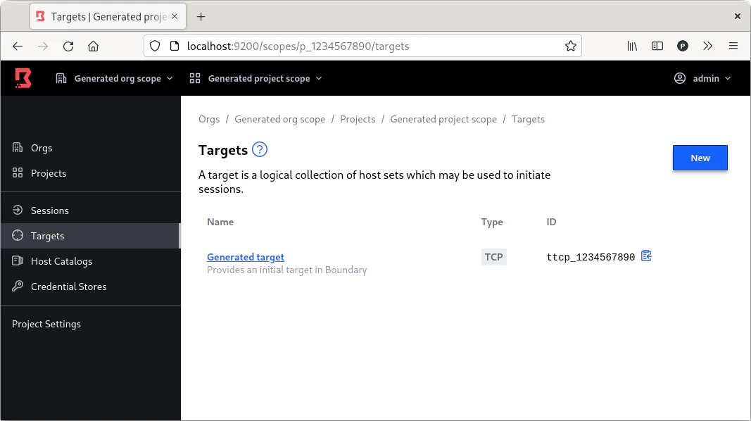 El uso de Boundary requiere una conexión a una base de datos, en el modo de desarrollo inicia una instancia de PostgreSQL mediante Docker. Una vez iniciado hay que autenticarse para obtener un token que otorga las credenciales de autorización de conexión a los diferentes sistemas o targets como los denomina Boundary.