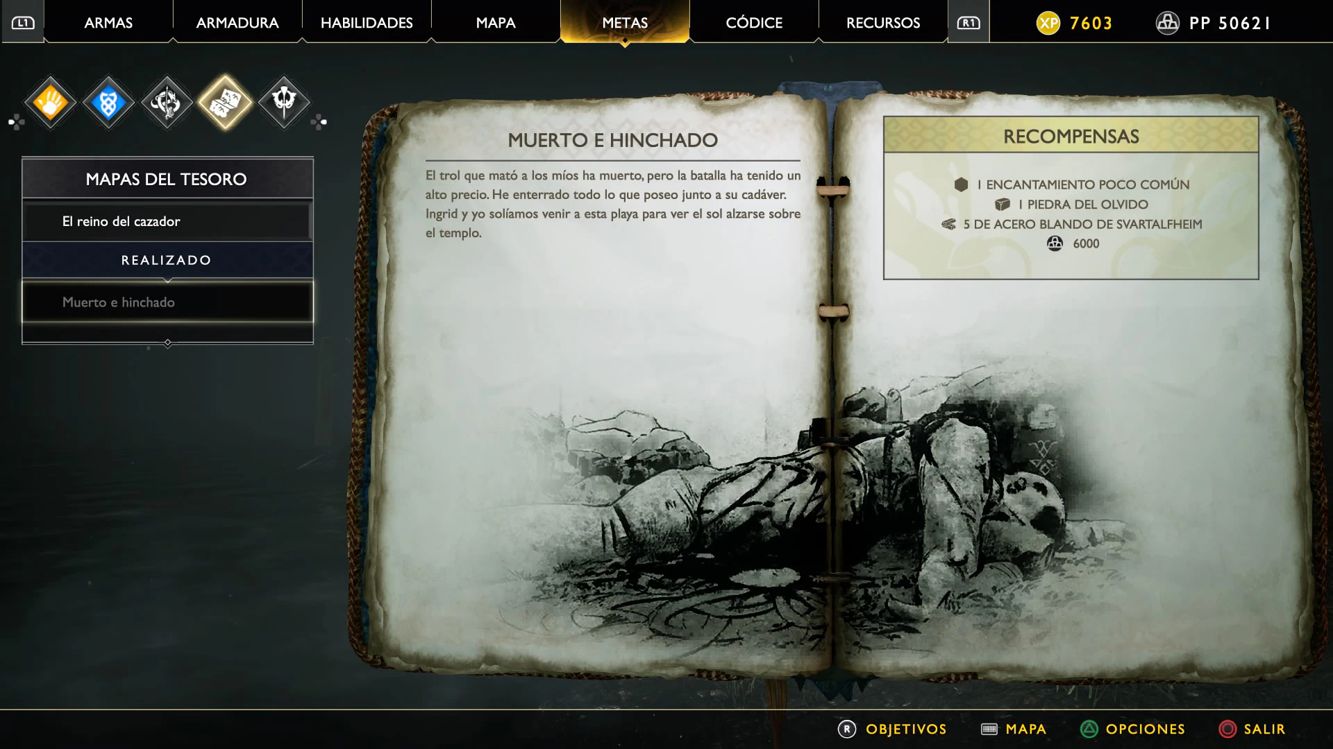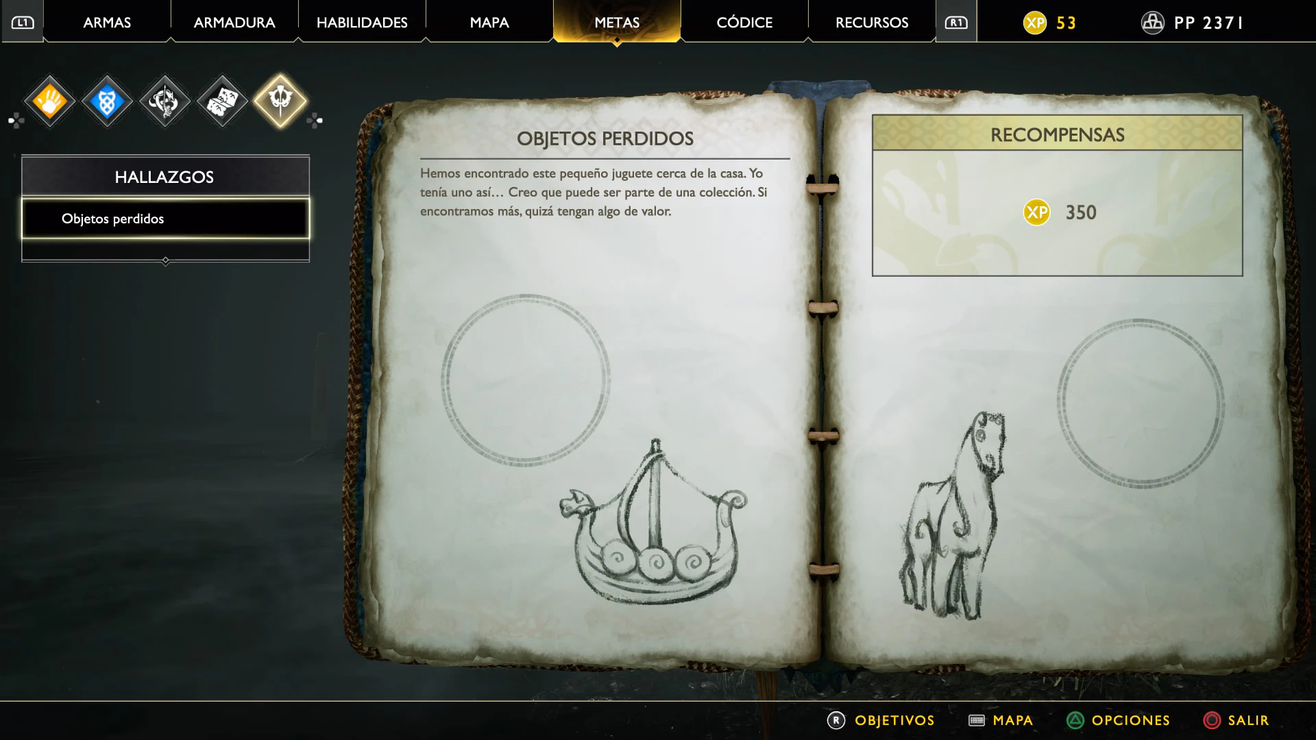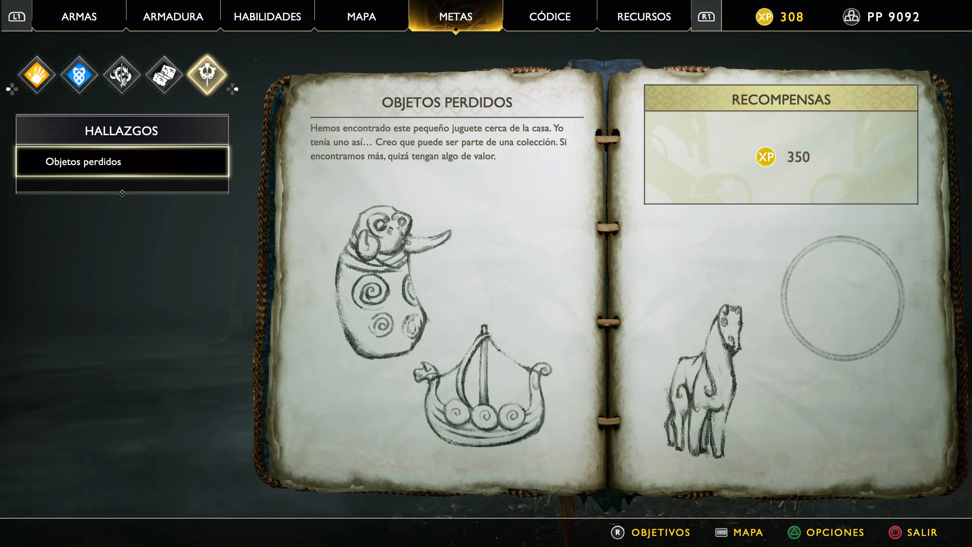 Entre los coleccionables están los santuarios de Jötnar, objetos perdidos, marcadores de saber, cuervos de Odin, mapas del tesoro y tesoros, objetos perdidos.