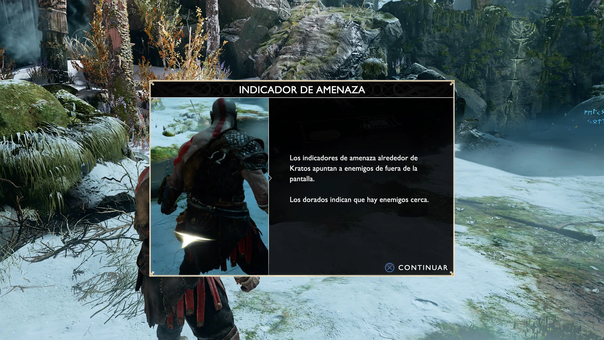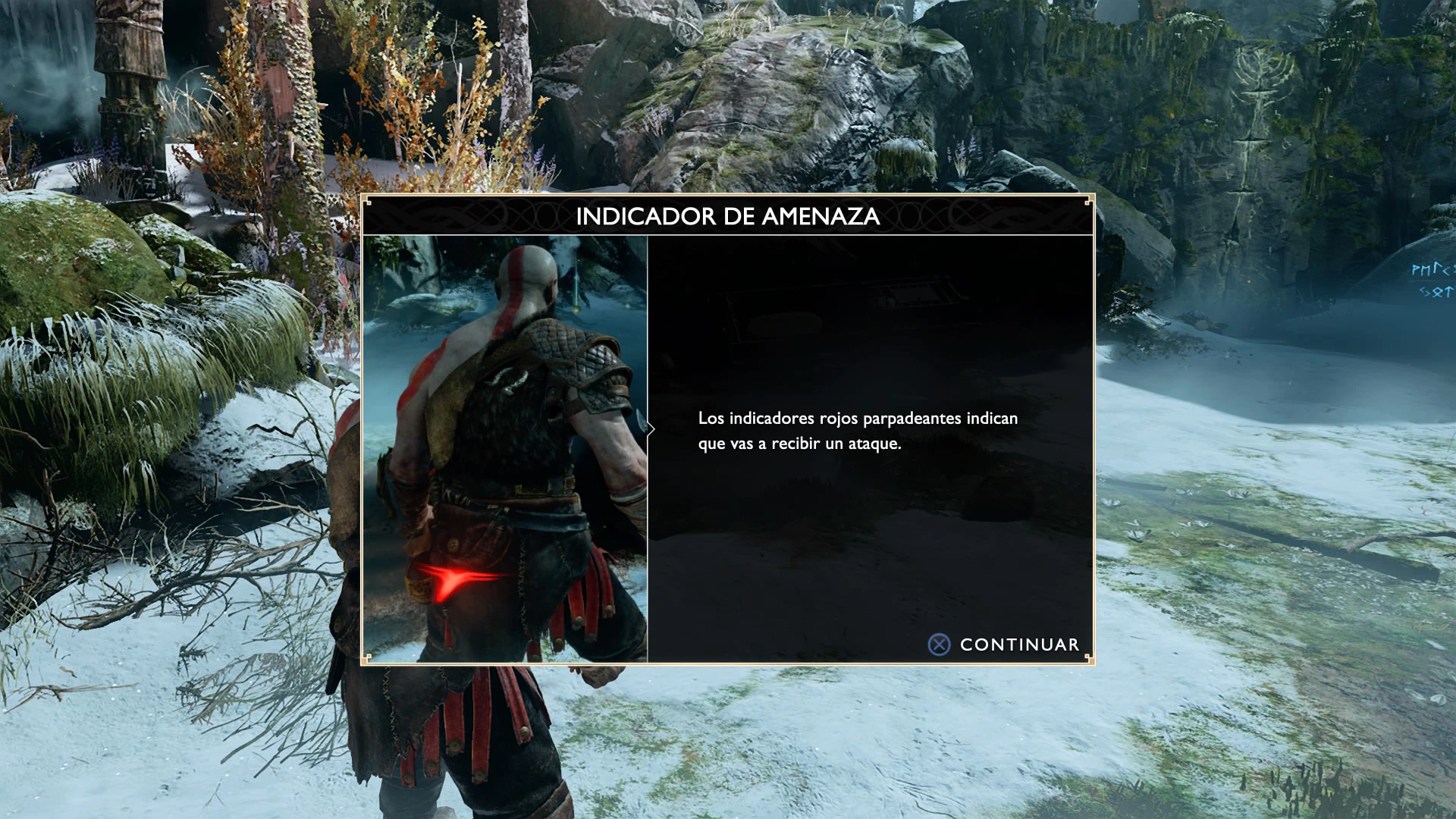 Durante el combate el juego ofrece indicadores de ayuda para evitar los golpes. Una flecha junto a su dirección en diferentes colores, rojo indica que el enemigo va a realizar un ataque es imbloqueable con lo que la única opción es esquivarlo, un ataque con destello anarillo es bloqueable, haciendo parry en el momento adecuado da ventaja y permite contraatacar, sin hacer parry simplemente bloquea el ataque pero existe la posibilidad de desequilibrar a Kratos y quedar un breve momento vulnerable.