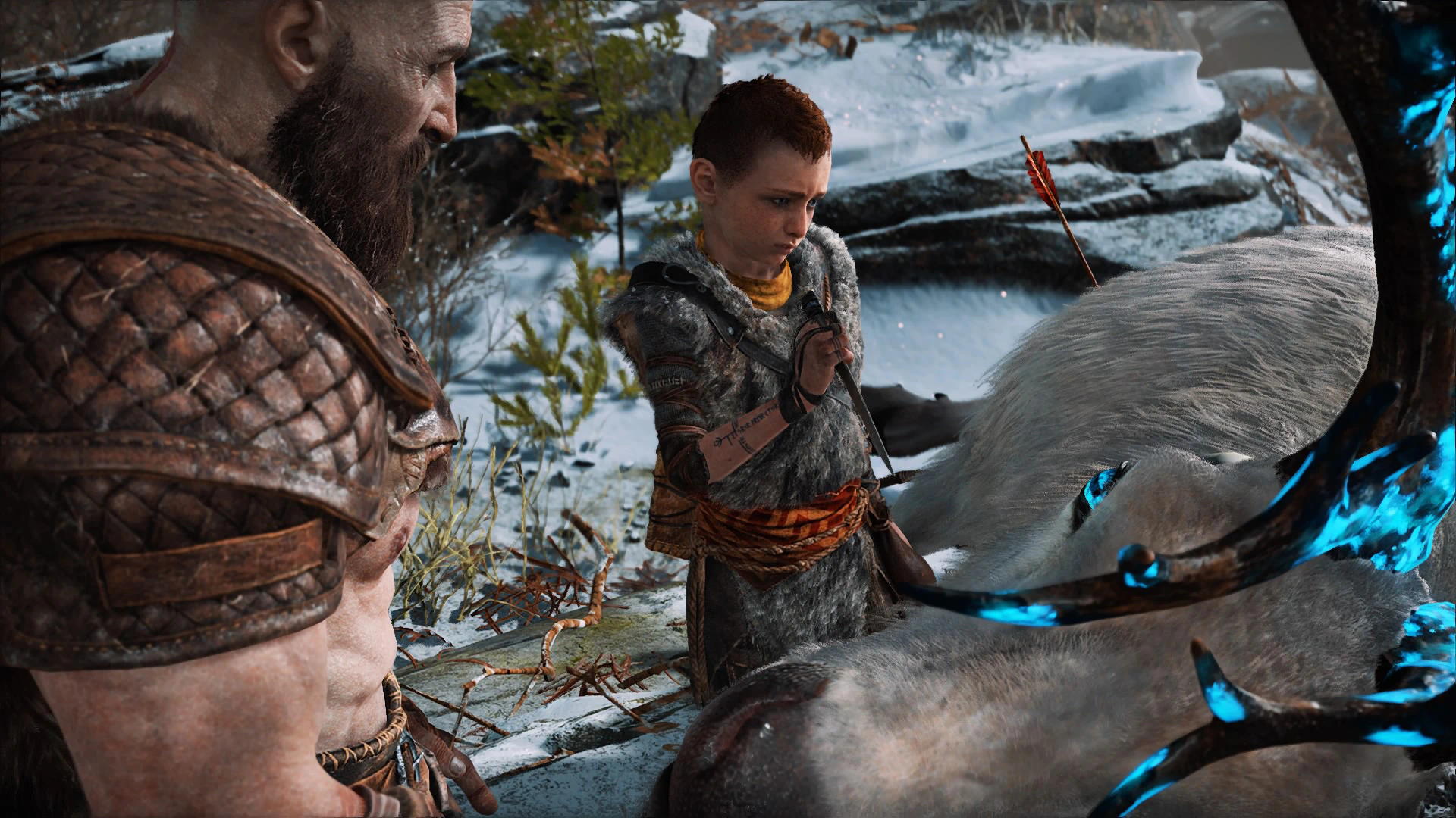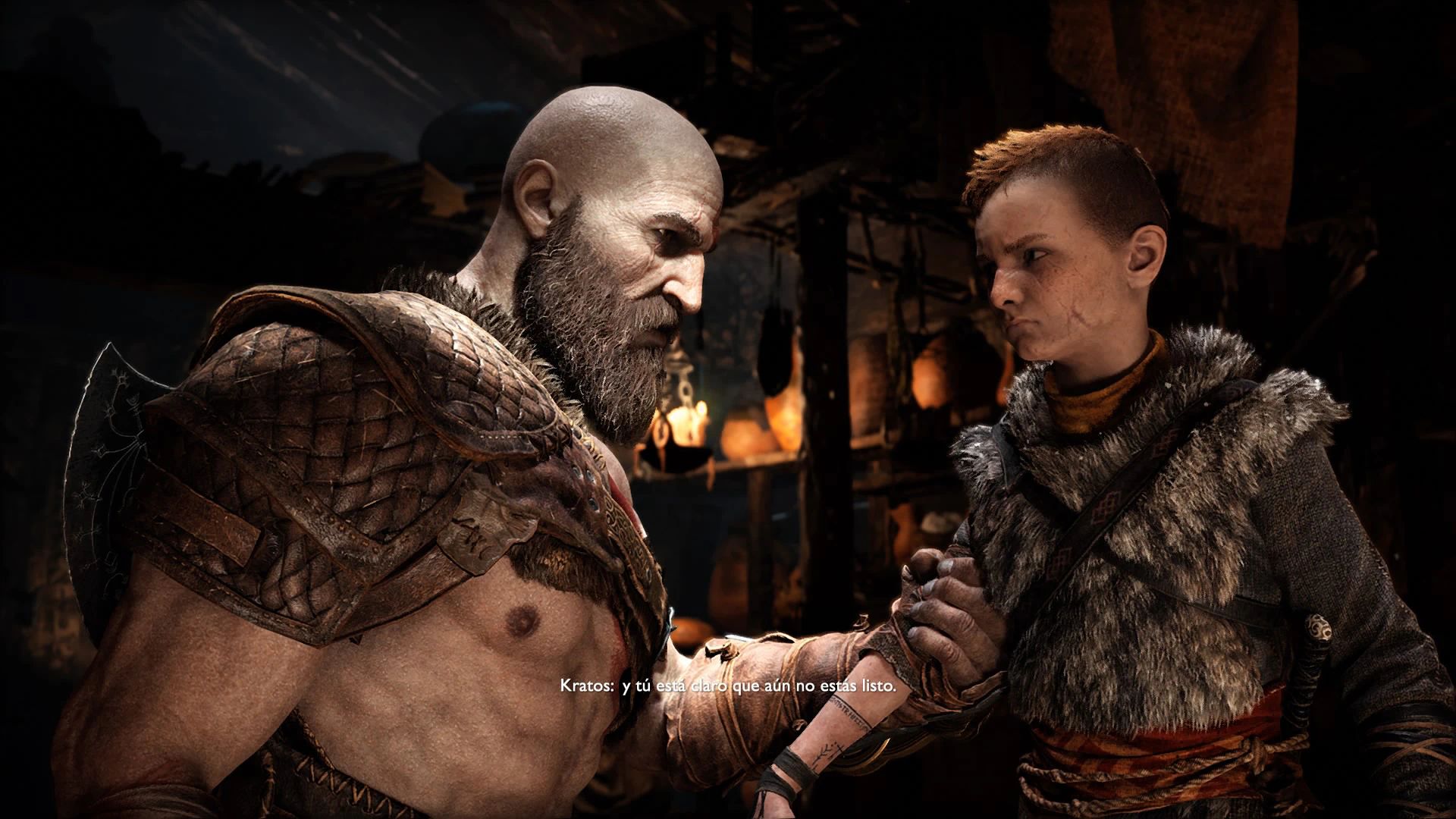 A lo largo de la historia del juego Kratos hace de mentor de su hijo Atreus, parece que Kratos enseña al chico pero Kratos también parece que tiene una lucha interna. Las conversaciones de Kratos con Atreus algunas son de humor e irónicas, otras son de enseñanza, sabiduría, y lecciones de combate y otras son de historia.