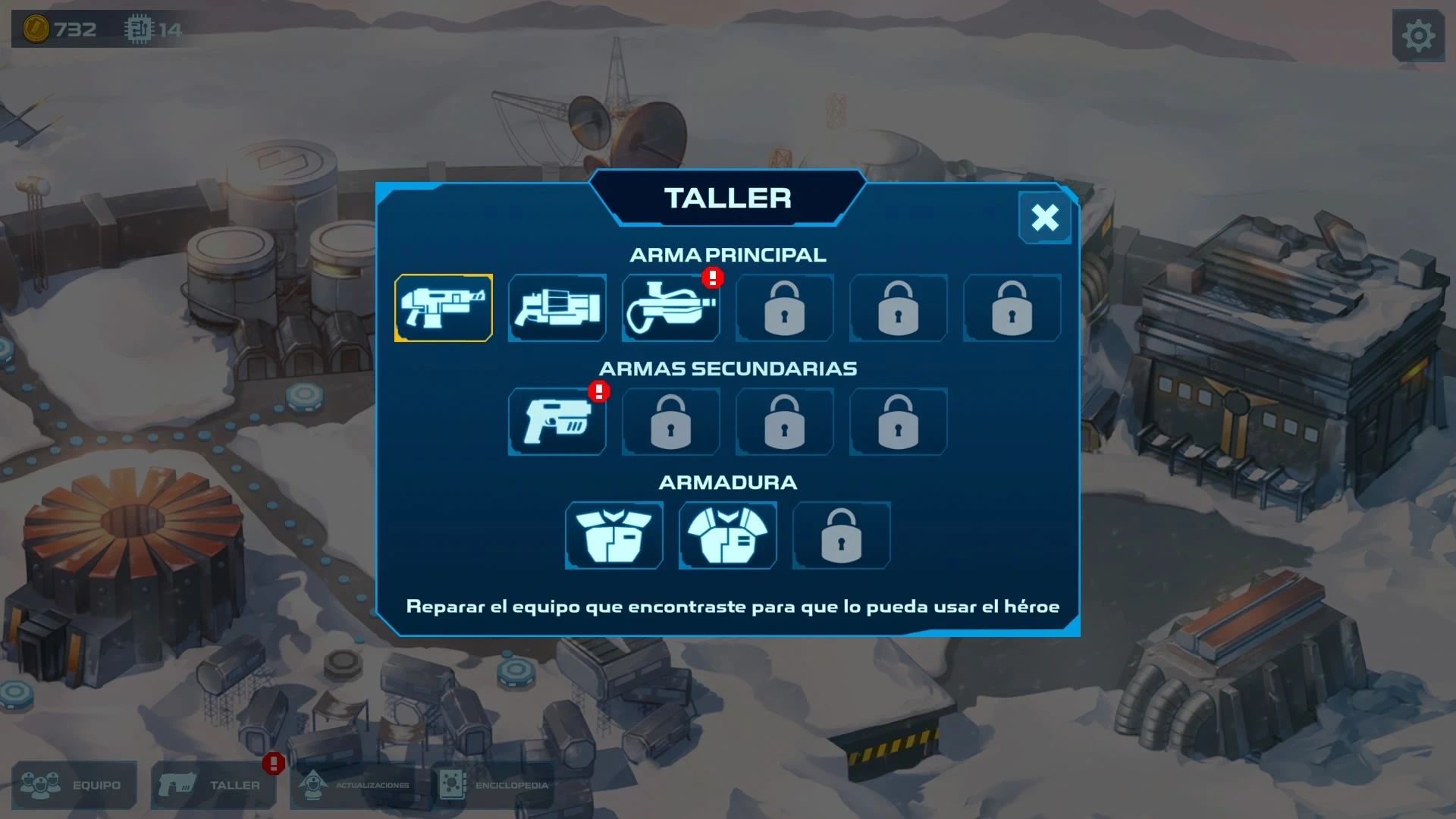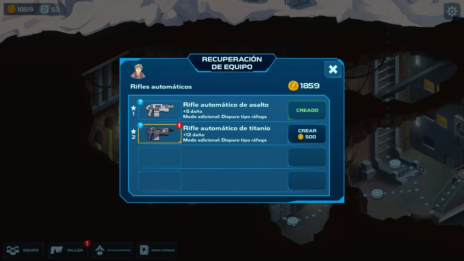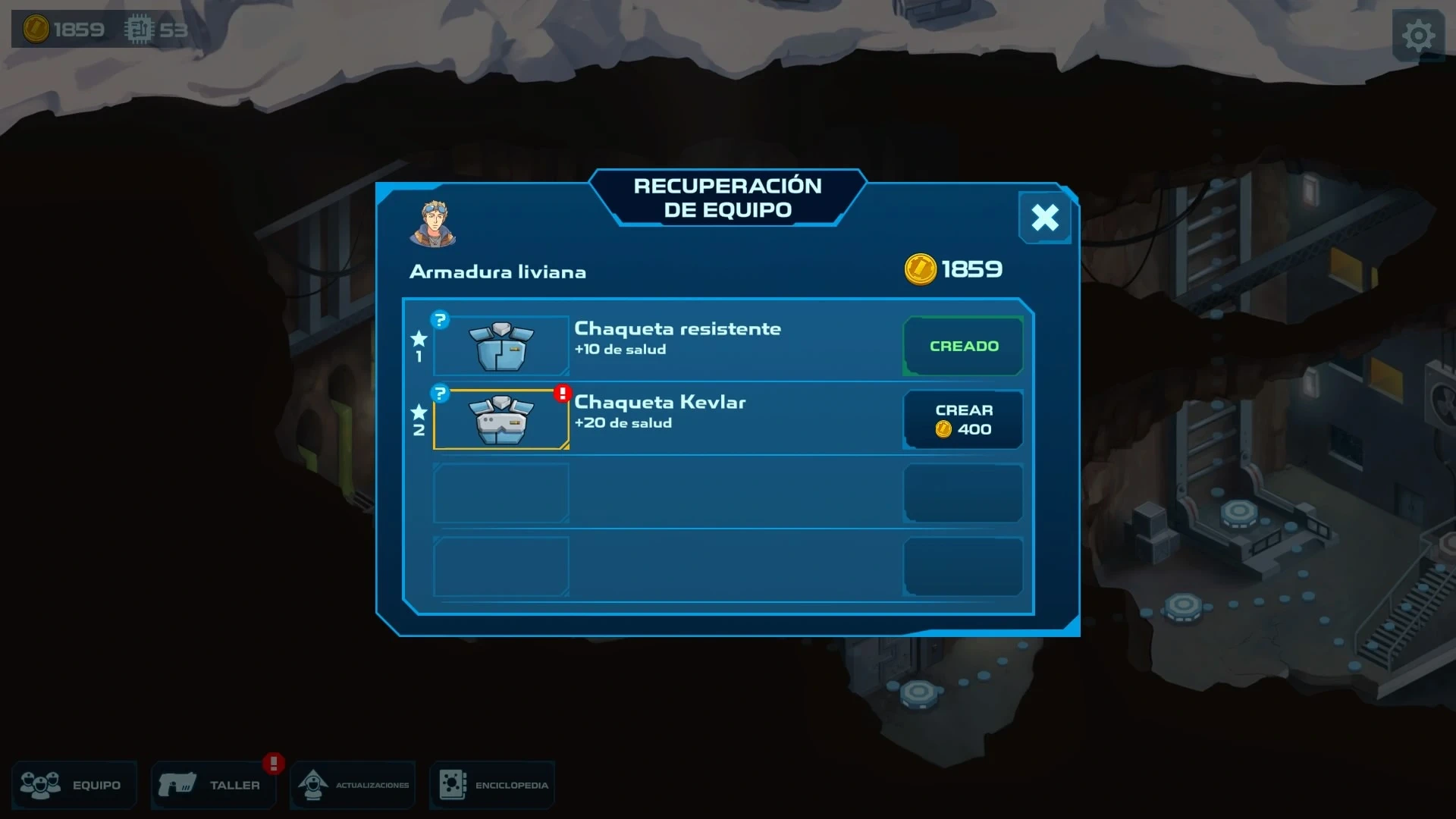 En ciertos puntos de la historia de la aventura hay unos encuentros en los que permiten adquirir nuevo equipo y armas para los personajes. Algunas armas las puede usar varios personajes con lo que hay repartirlas entre los miembros del grupo. El taller permite investigar las armas principales, armadura para otorgar más puntos de vida a los personajes o un arma secundaria que tiene infinita munición.