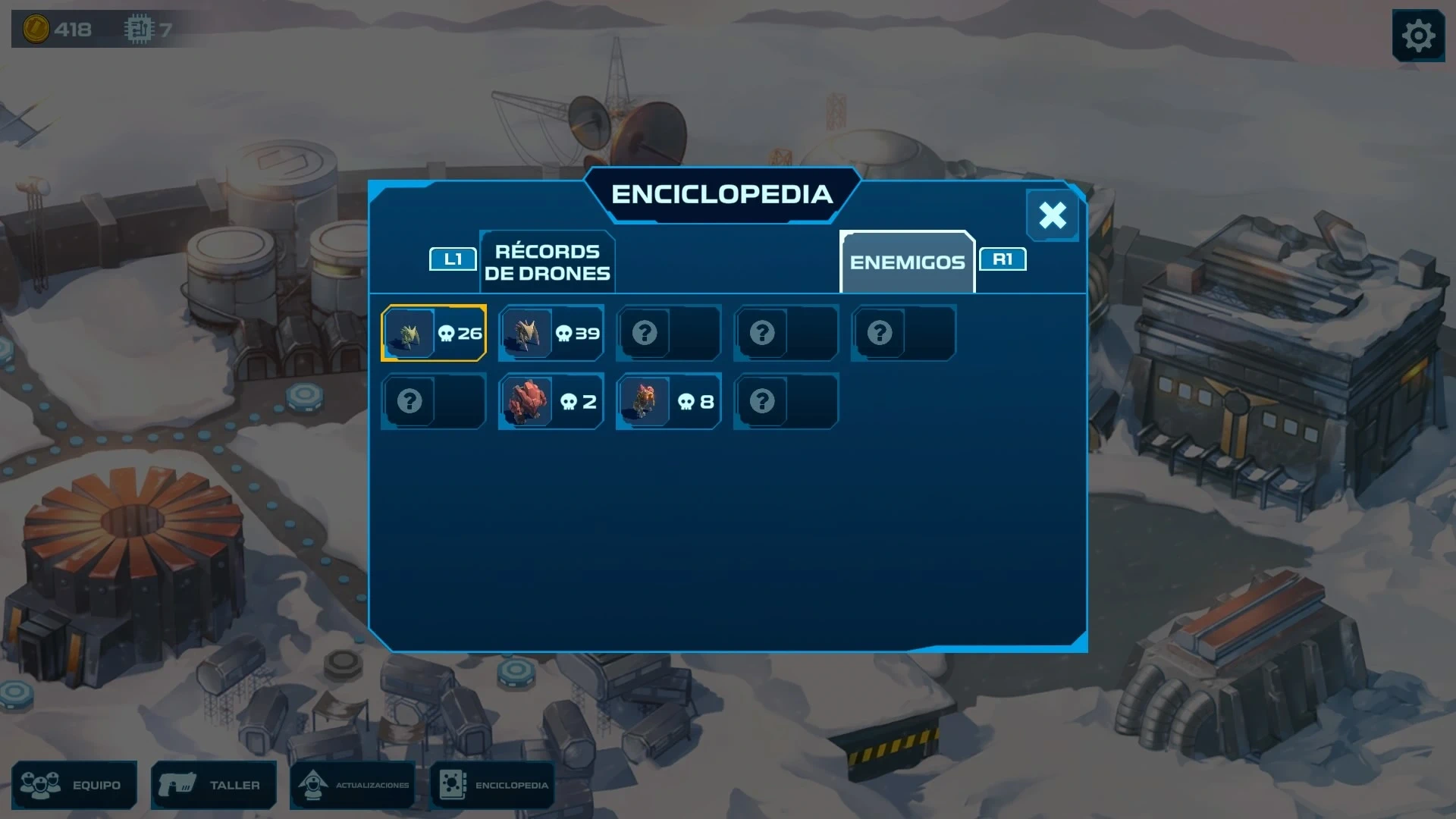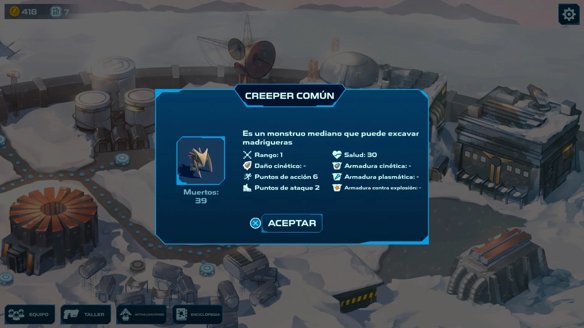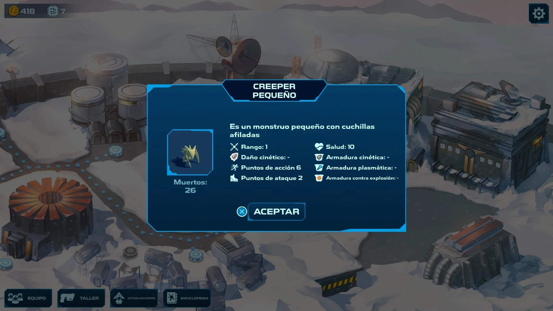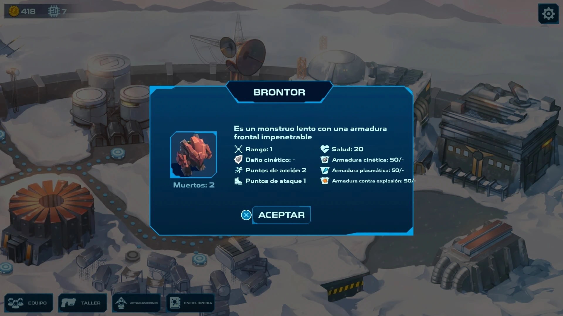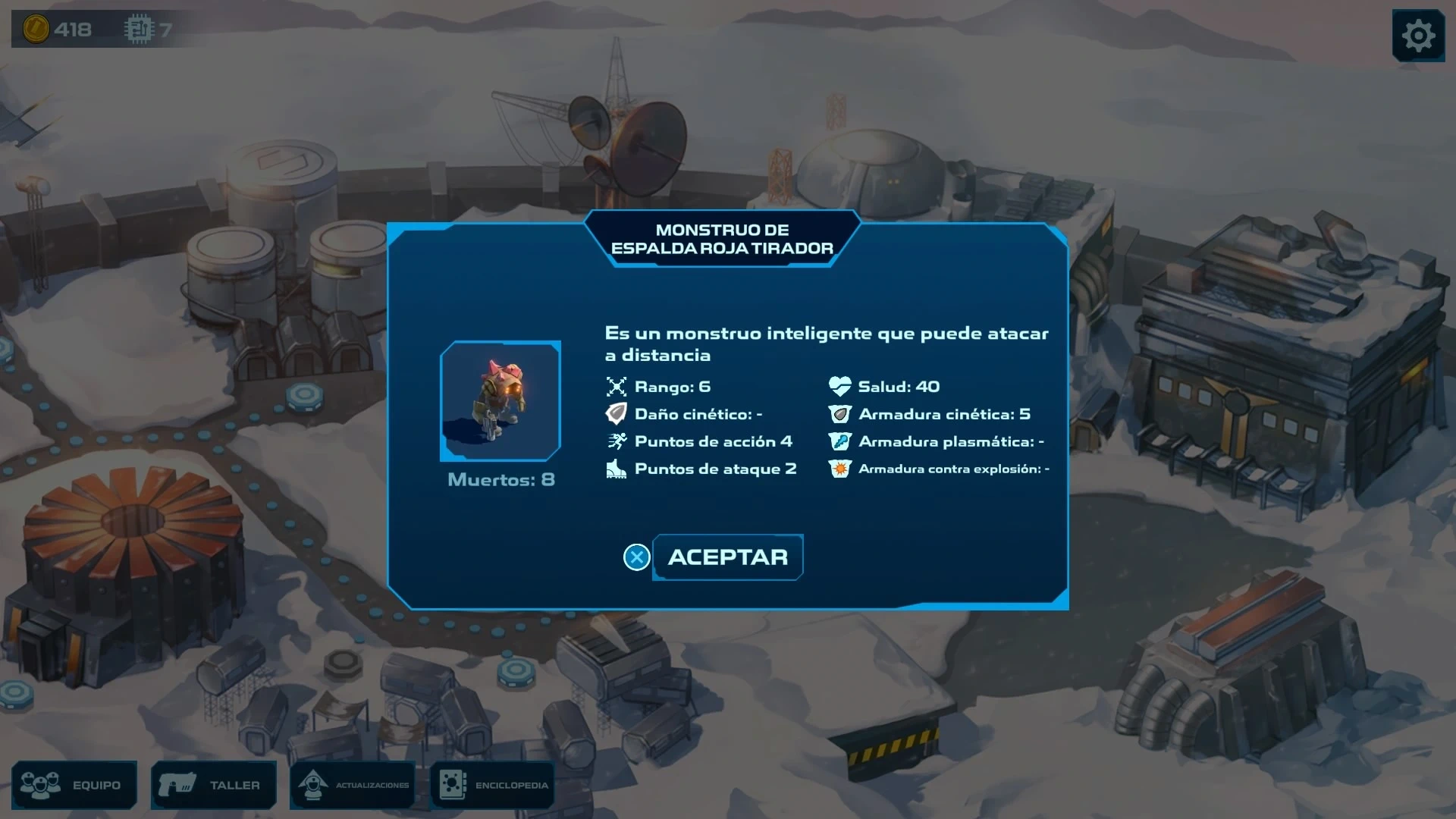 En la enciclopedia están las estadísticas de cada uno de los enemigos que se han encontrado, sus puntos de acción y puntos de vida. Esta información es muy útil para posicionar a los personajes justo a la distancia que no puedan ser atacados y en el siguiente turno poder acabar con los enemigos.