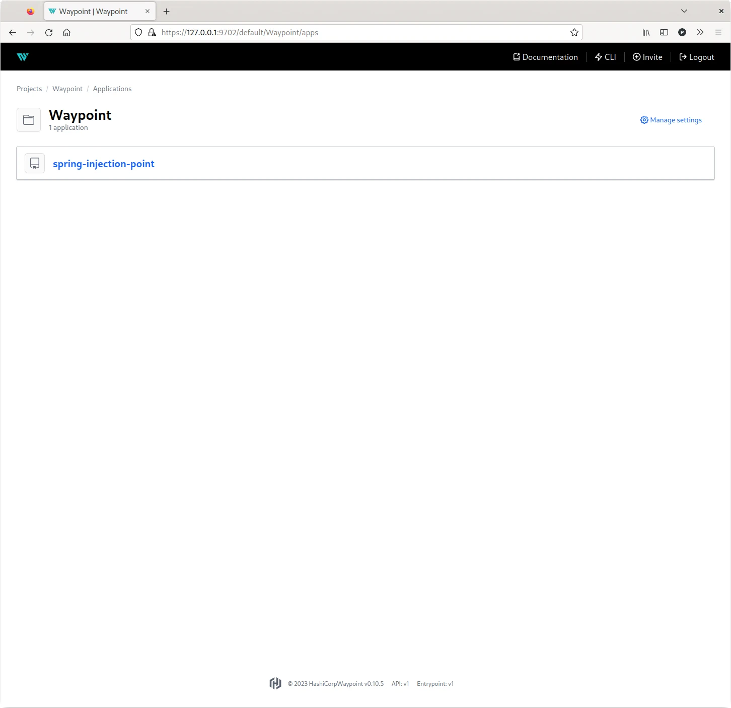 El servicio se inicia en la máquina y puede ser visto a través de la consola de Waypoint o con los comandos de Docker ya que en esencia no es más que una instancia de contenedor.