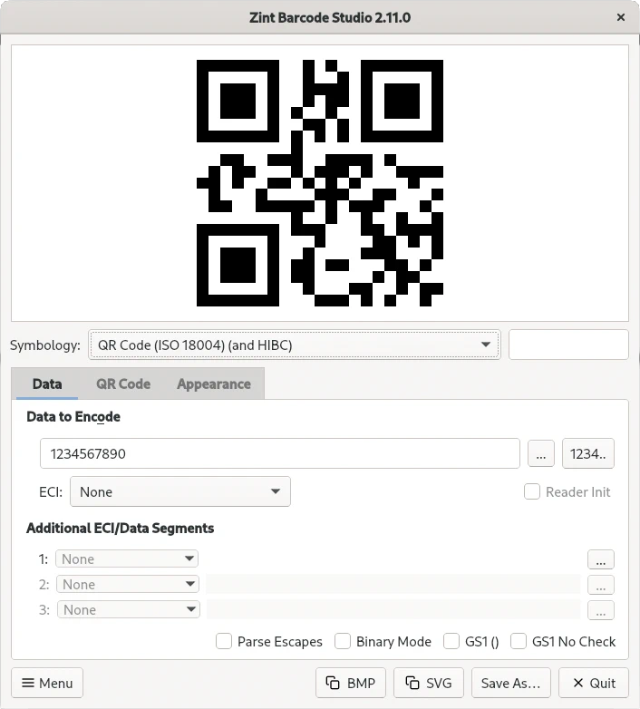 La aplicación Zint Barcode Studio permite generar códigos de barras en una gran cantidad de estándares, se puede instalar en GNU/Linux fácilmente al estar en formato Flatpak con la aplicación Software de GNOME. Se selecciona el estándar para el código de barras, algunas propiedades de la imagen e introducir el código a codificar en la imagen, finalmente la imagen se puede exportar a diferentes formatos de imagen.