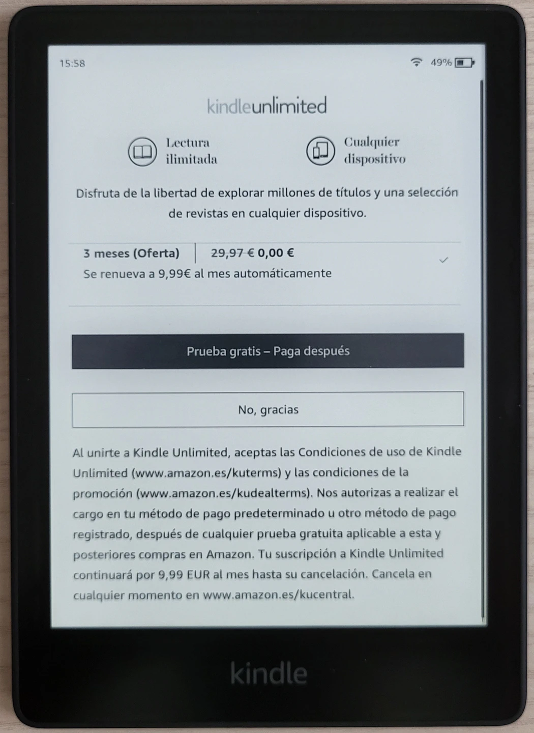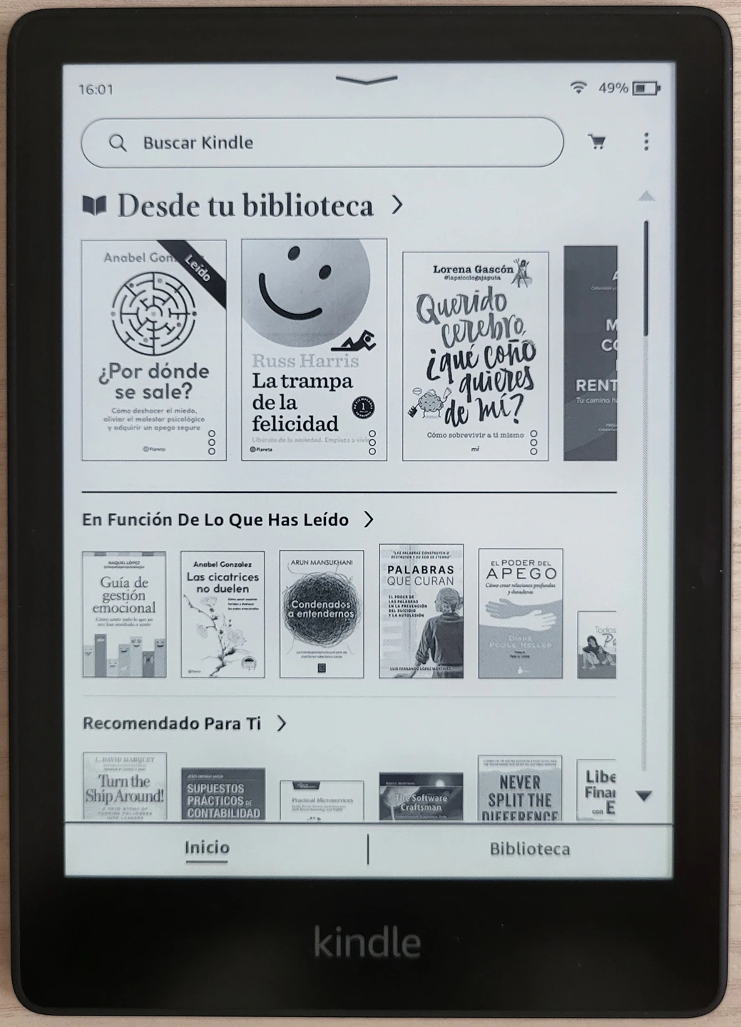 Una parte del tiempo libre que dispongo la dedico a la lectura, de novelas y libros técnicos principalmente. Tras tener un Kindle Touch del 2012 y venderlo me he vuelto a comprar un Kindle Paperwhite de 11ª generación. Tras casi 10 años de diferencia entre ambos dispositivos las mejoras técnicas entre ambos dispositivos son notables, teniendo el Paperwhite una pantalla mucho mejor e iluminación entre otros añadidos que hacen del Paperwhite un salto grande y merezca el cambio de dispositivo.