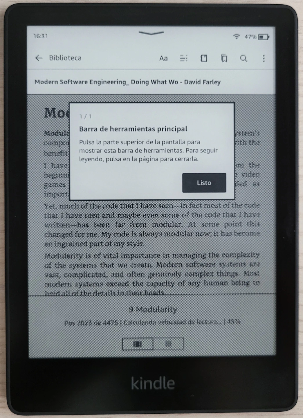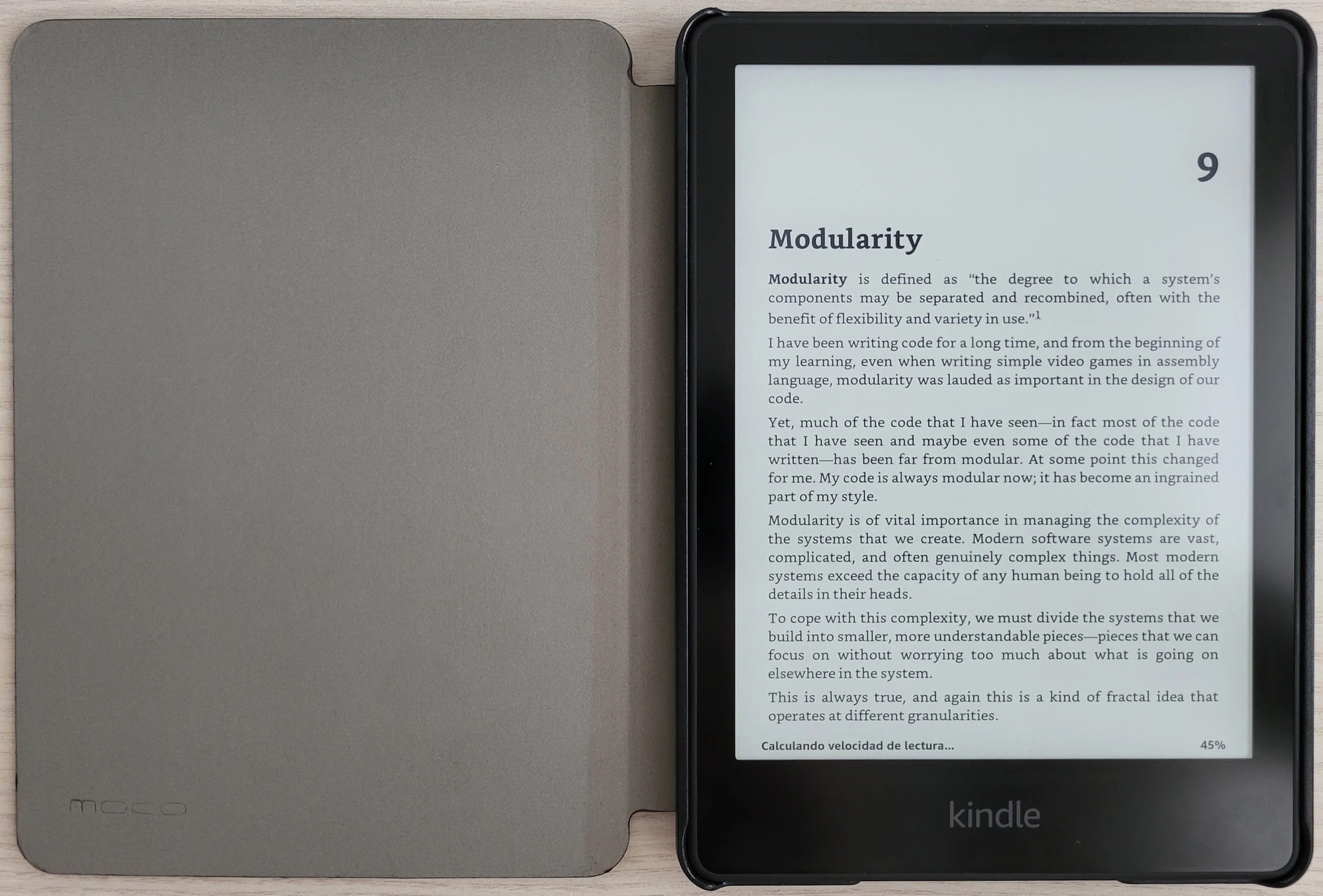 Después de dejar de escribir tanto en el blog he recuperado una buena parte que le dedicaba y he estado leyendo libros técnicos en papel. Con más tiempo he vuelto a comprar un lector de libros electrónicos y ha sido un Amazon Kindle Paperwhite de 11ª generación comercializado en el año 2021.