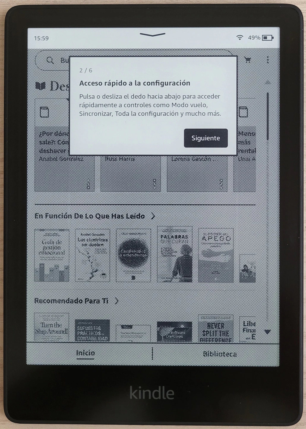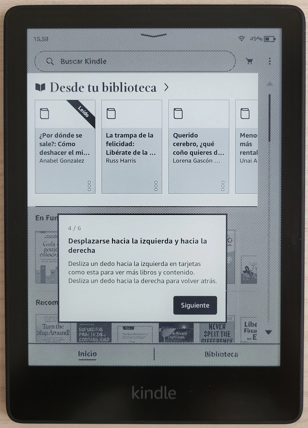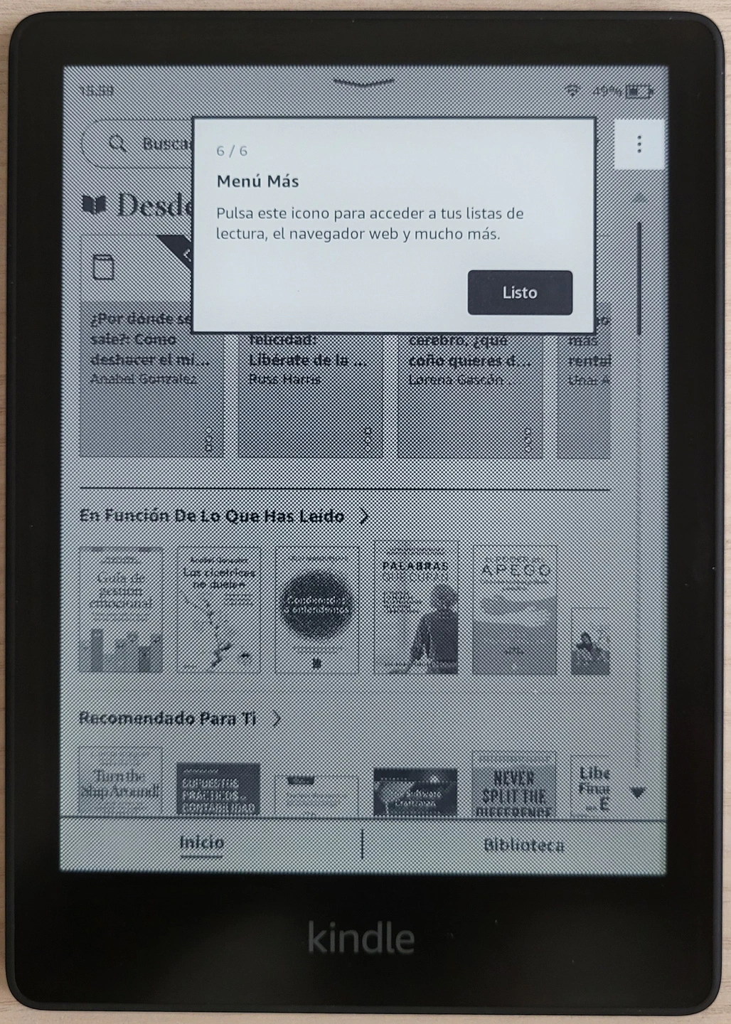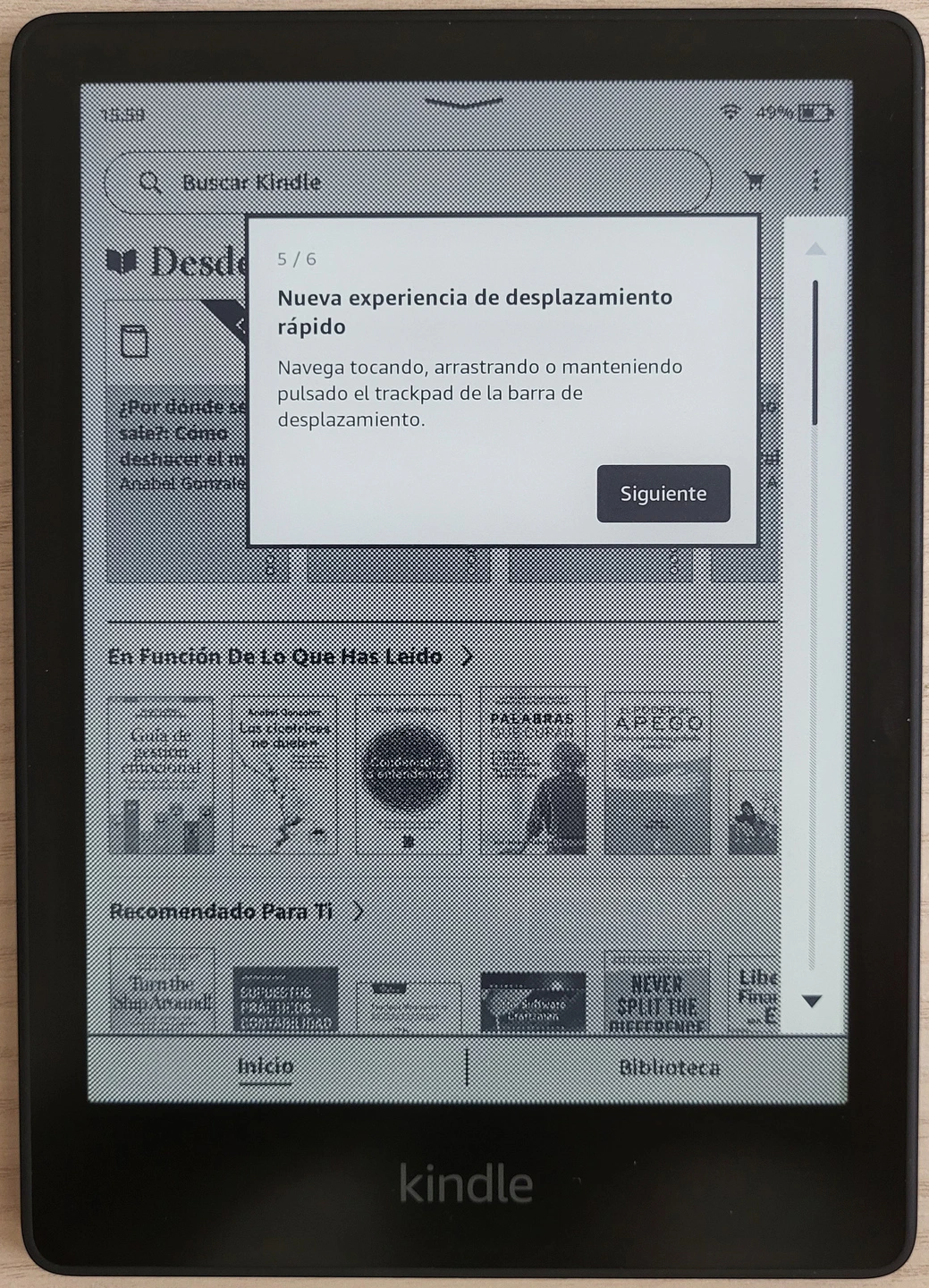 El Paperwhite es de color negro, el Touch era gris. El Touch tenía un botón para volver a la biblioteca pero la mayoría de gestos eran similares al Paperwhite.