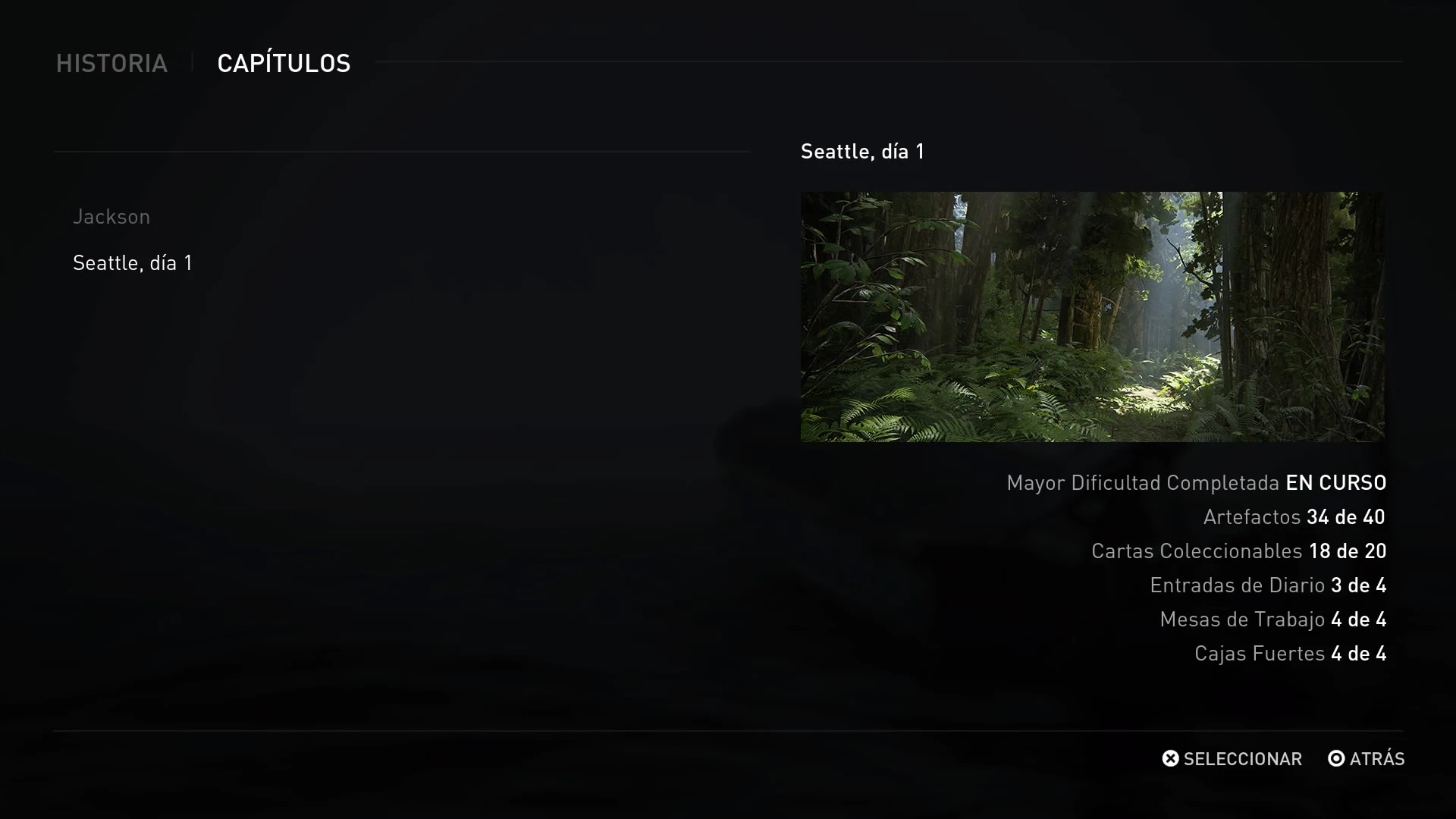 Al ir al menú cada capítulo indica que cantidad coleccionables tiene y cuantos quedan por recoger que da una medida del éxito en la exploración.