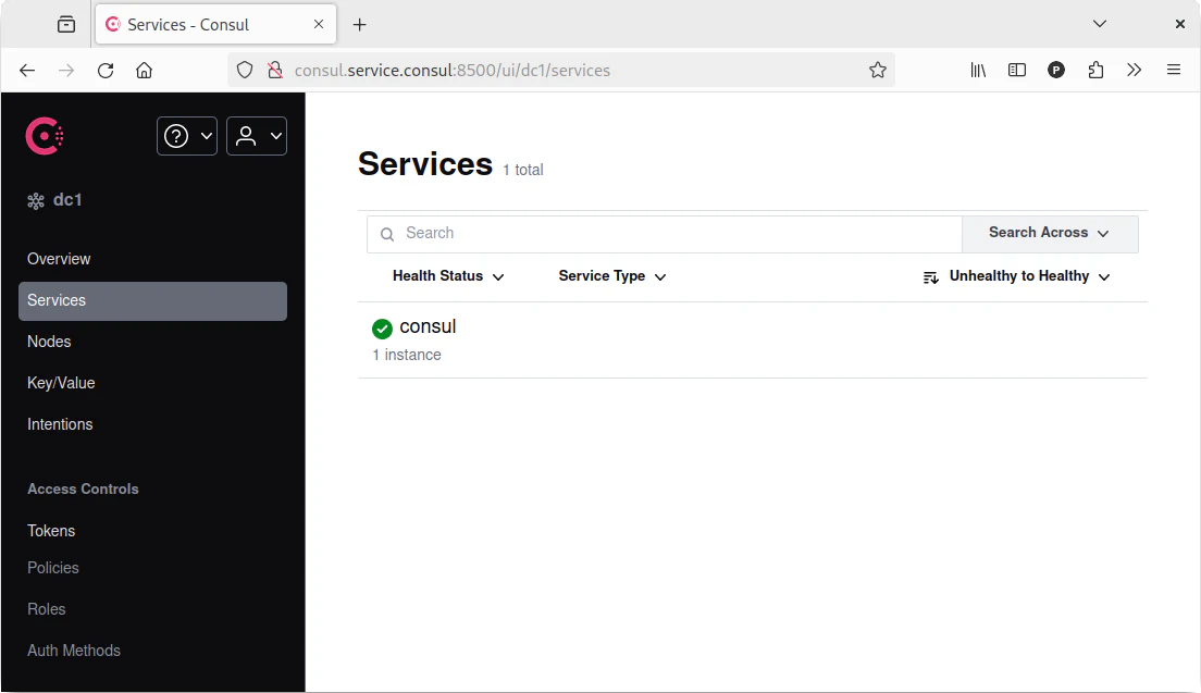 Ahora es posible acceder a la interfaz de la consola web de Consul con el dominio en vez de con la dirección IP.