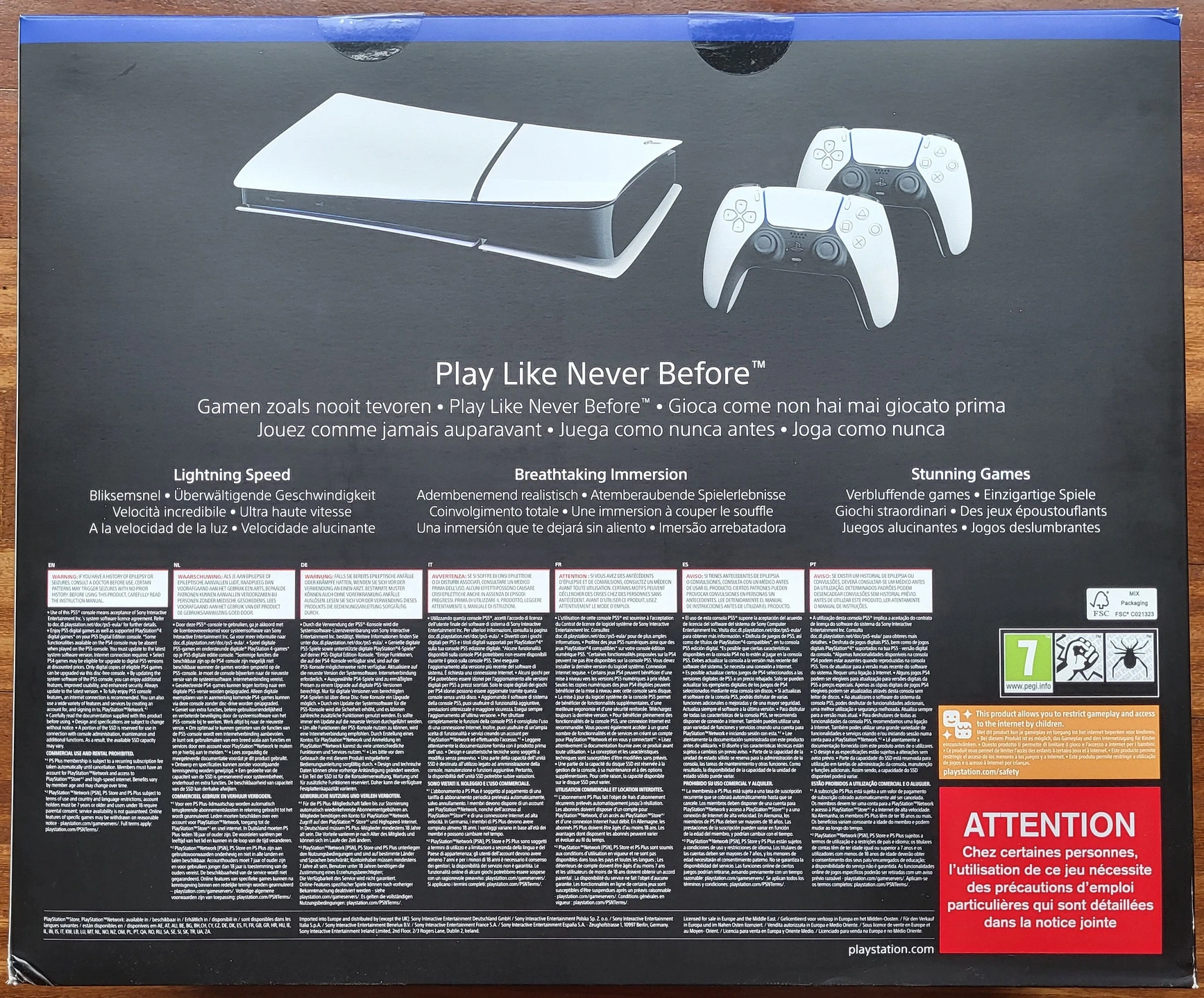 Las siguientes imágenes muestran el desempaquetado de una PlayStation 5 slim digital.