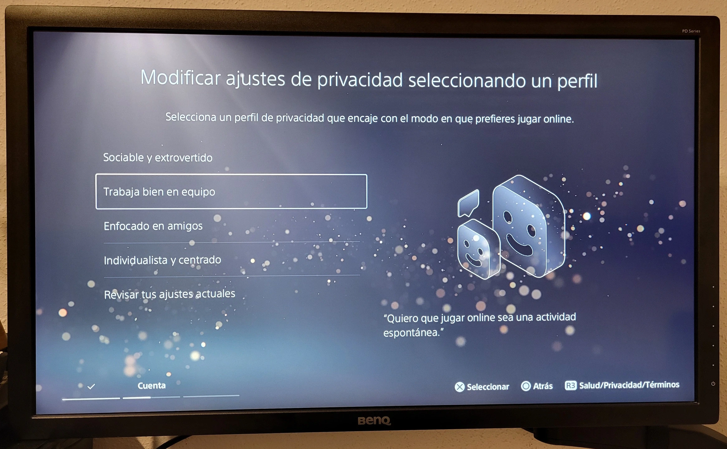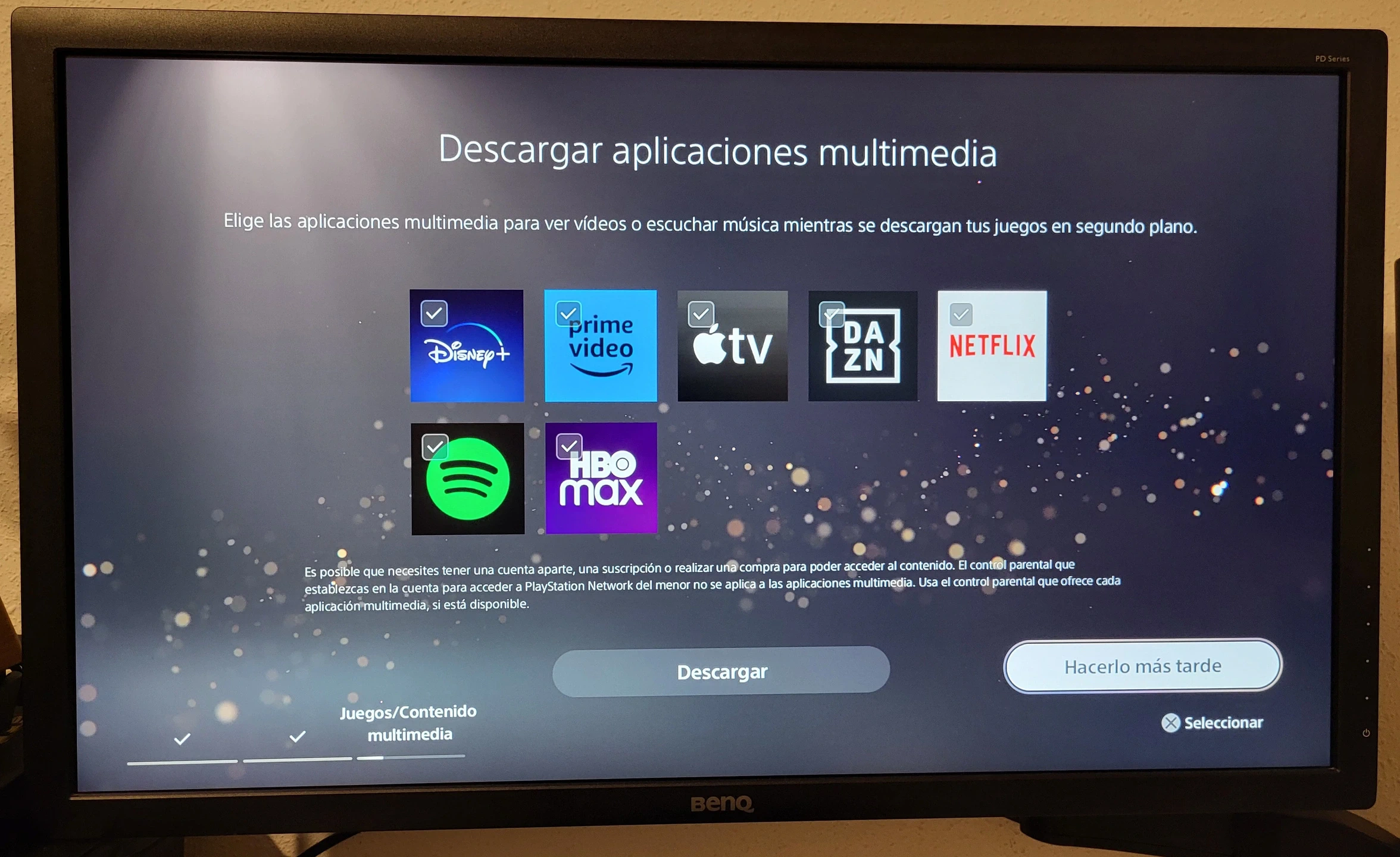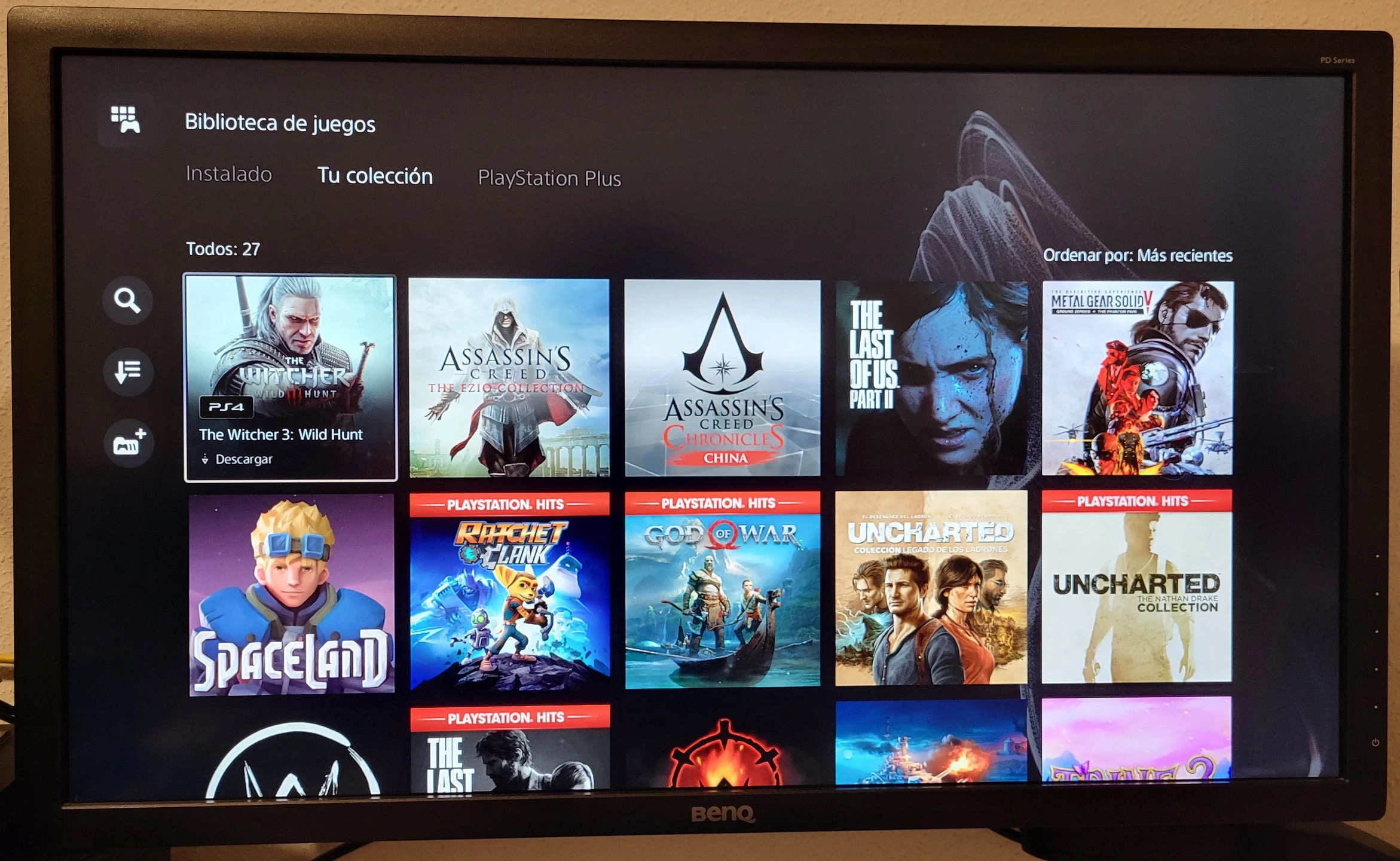 El cambio del mando del DualShock al DualSense aporta los gatillos adaptativos que en algunos juegos es otra forma de respuesta háptica que mejora la experiencia de juego. Tras completar la configuración inicial del 1 TB de espacio de almacenamiento quedan uno 820 GB de espacio libre para juegos.