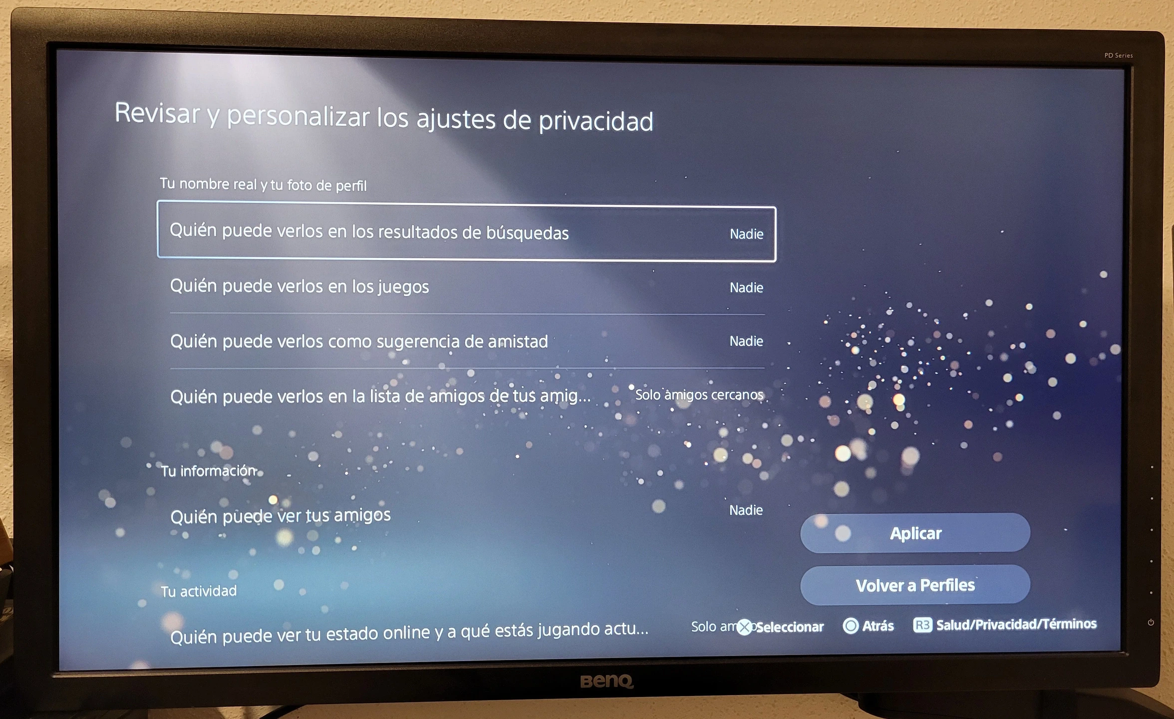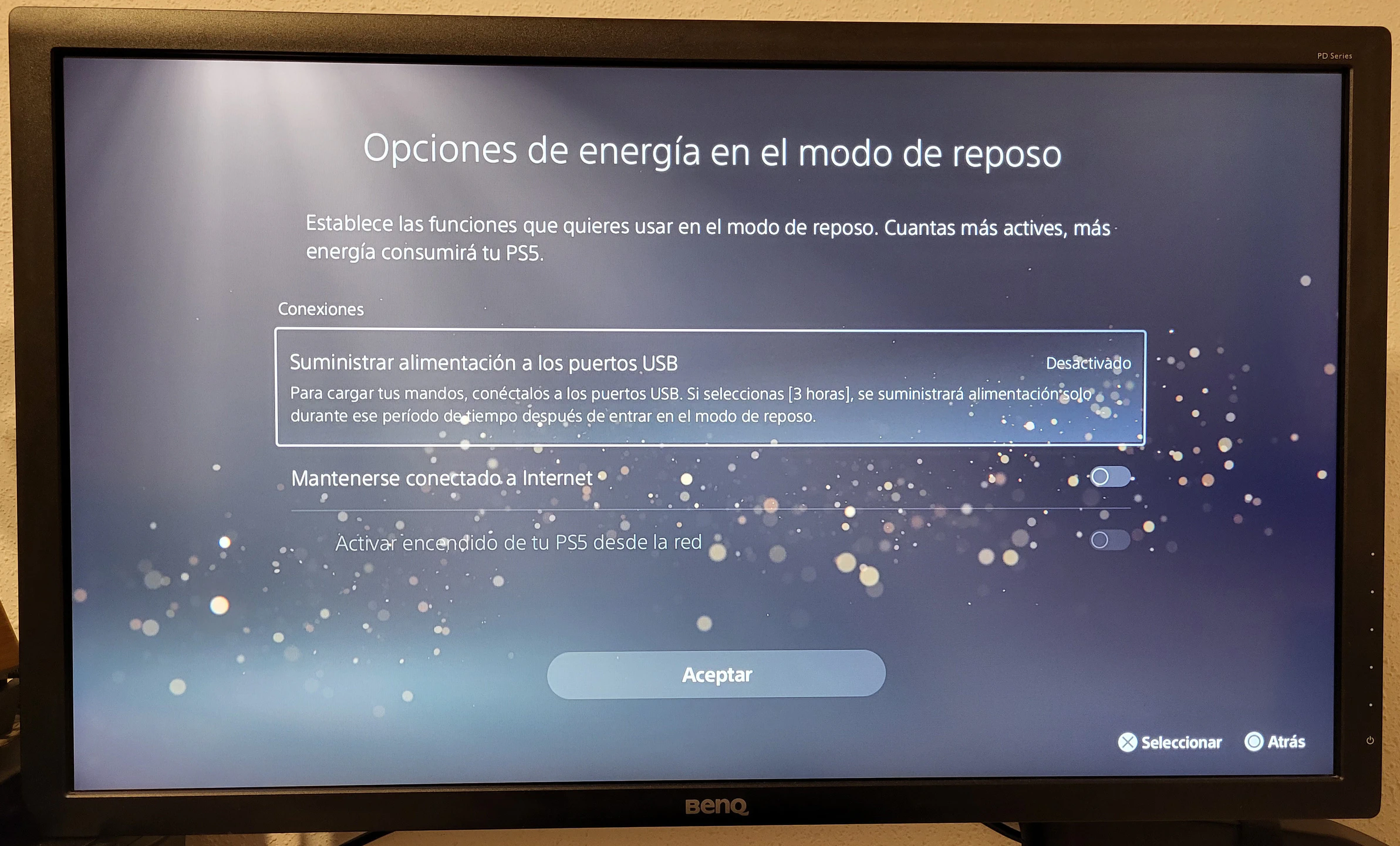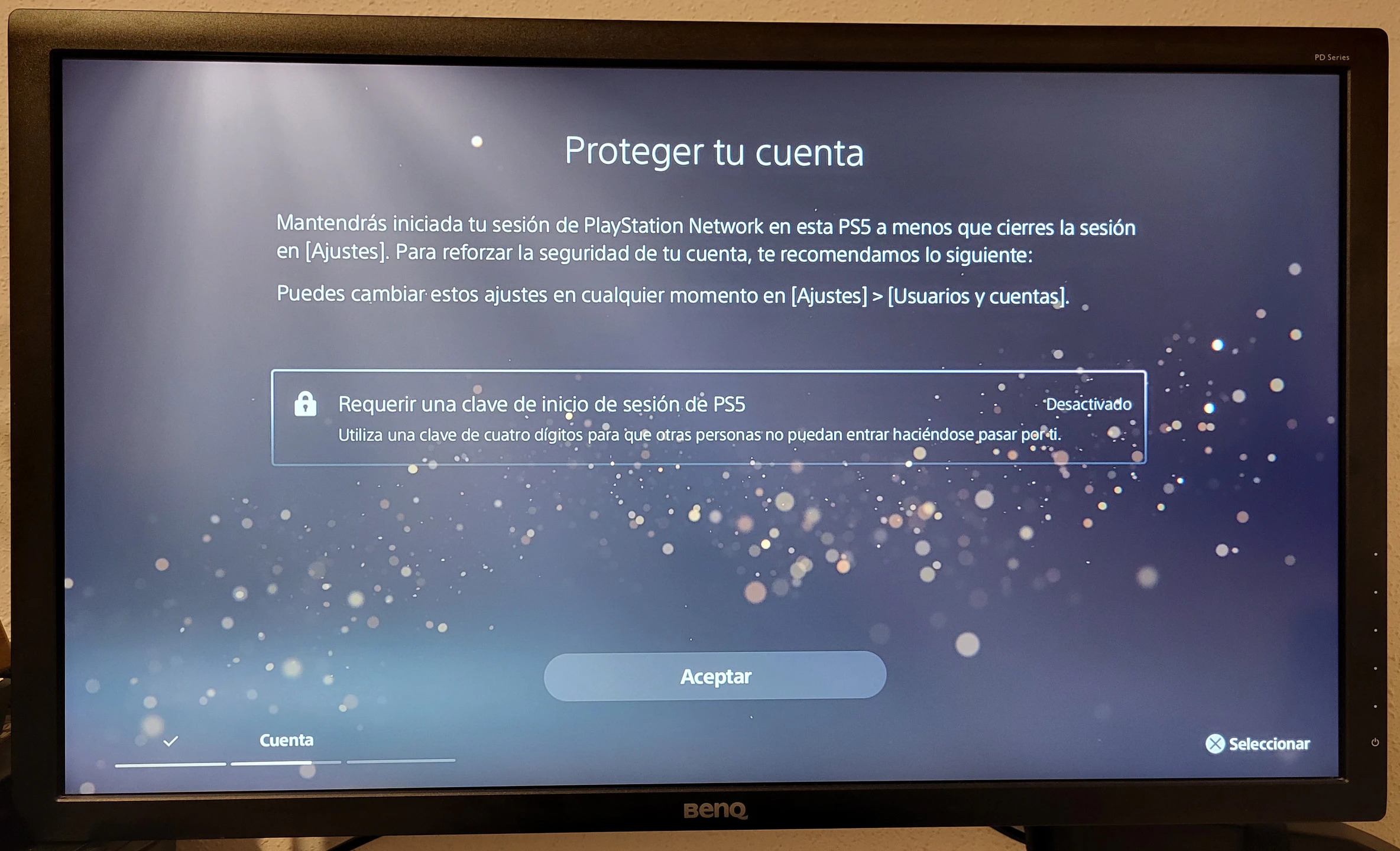 El cambio del mando del DualShock al DualSense aporta los gatillos adaptativos que en algunos juegos es otra forma de respuesta háptica que mejora la experiencia de juego. Tras completar la configuración inicial del 1 TB de espacio de almacenamiento quedan uno 820 GB de espacio libre para juegos.