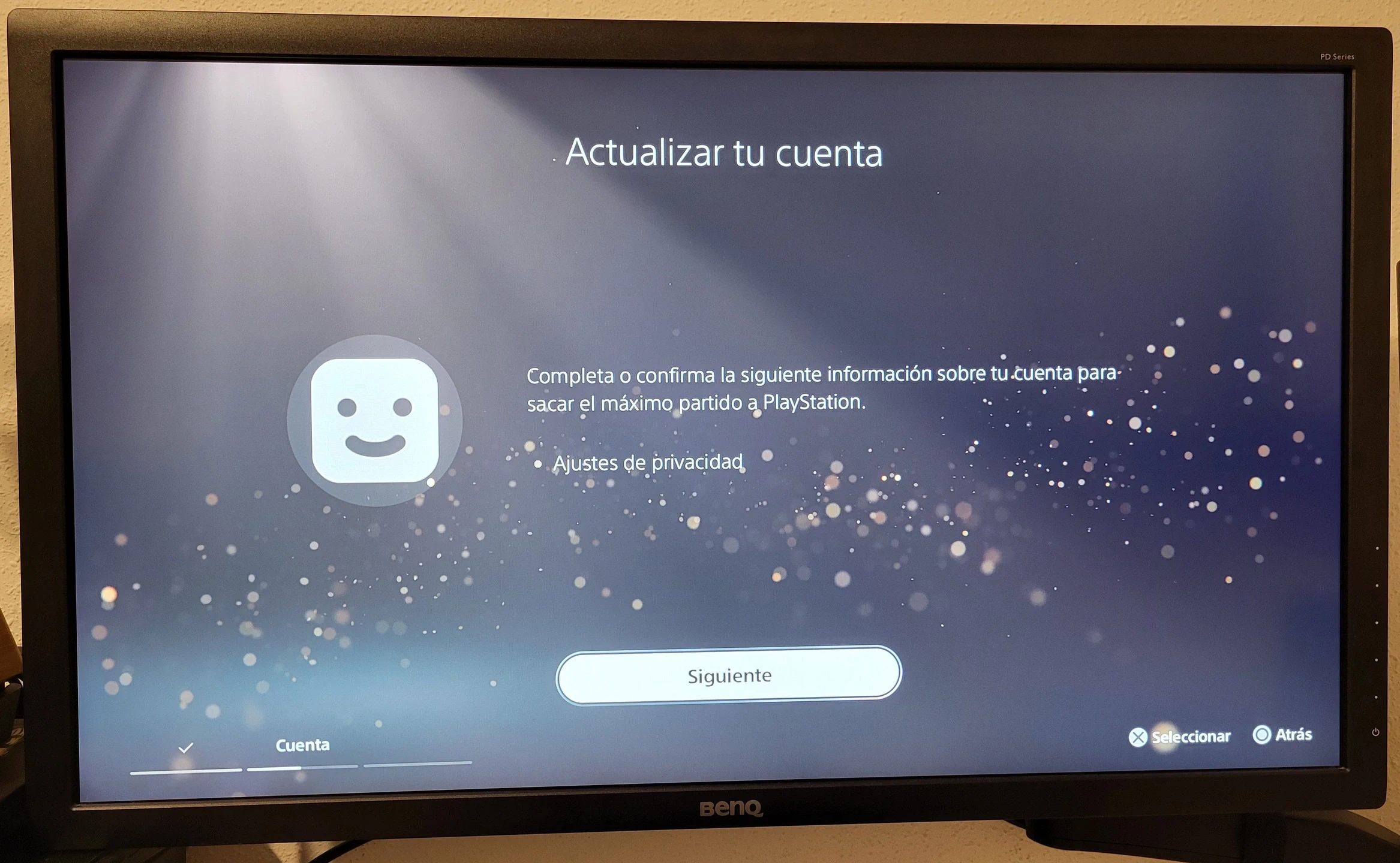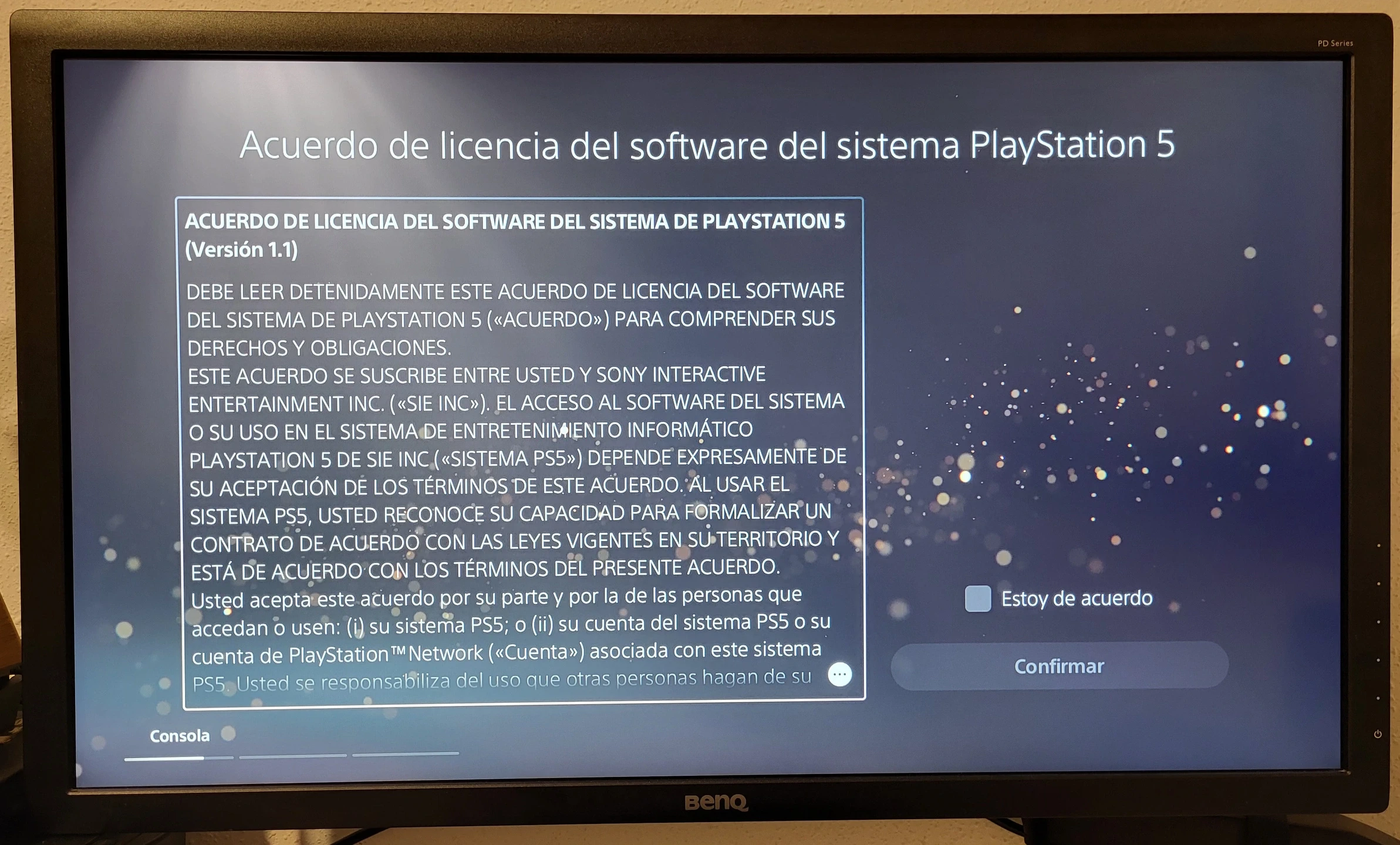 En el primer encendido hay que realizar unos cuantos pasos de configuración, para emparejar el mando, cuanta de usuario, privacidad, transferencia de datos de la PS4, actualizaciones y configuración de la red WIFI.