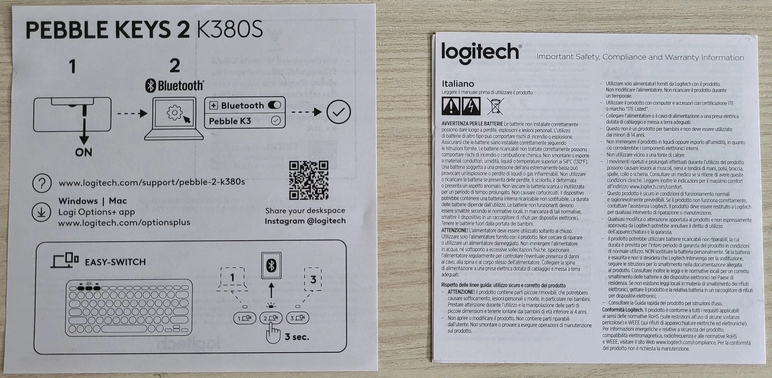 Es fácil emparejar en cualquier dispositivo que admita Bluetooth, basta con mantener pulsada unos segundos una de las teclas de dispositivo F1, F2 o F3 hasta que empiece a parpadear rápidamente y entra en modo emparejamiento con lo que se hará visible en la lista de dispositivos donde se quiera usar. Tanto en la televisión como en la computadora solicita teclear un código que aparece en pantalla y pulsar la tecla enter. Una vez emparejado a varios dispositivos para cambiar de uno a otro basta una pulsación en una de las teclas de dispositivo que anteriormente se ha memorizado.