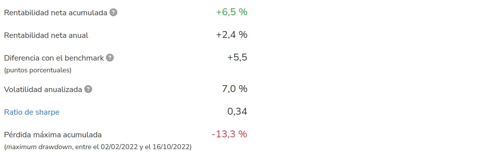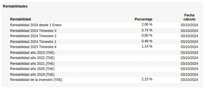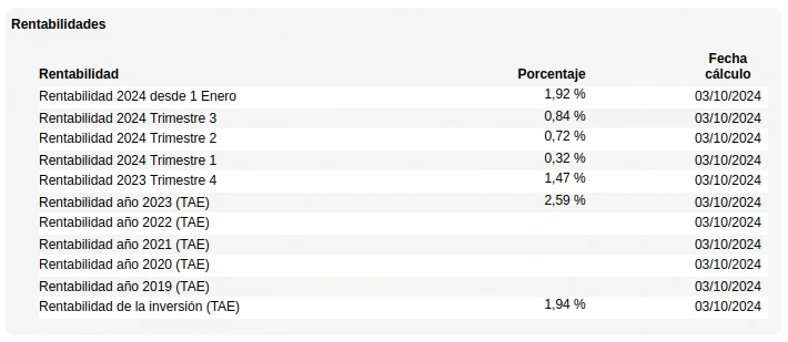 Indexa Capital ofrece una página de estadísticas muy detallada en la que eligiendo fecha de inicio y cartera modelos observar la rentabilidad de esa inversión. Los fondos de mi banco están en una rentabilidad acumulada de alrededor de un 3% o un 1,5% anualizado tras casi 3 años de inversión, una rentabilidad desde el inicio de este 2024 del 5% aproximadamente.