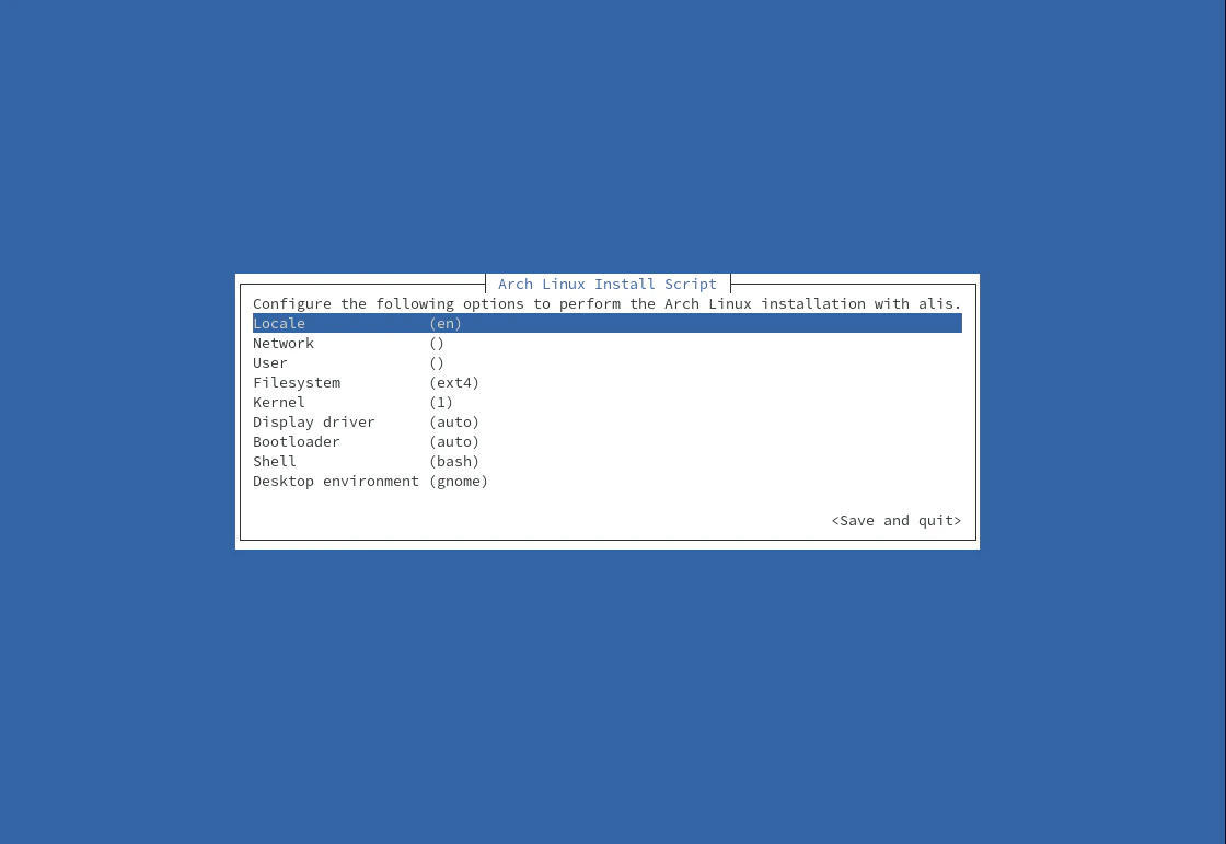 Aunque instalar Arch Linux con alis es simplemente editar un archivo de texto con vim para cambiar unas pocas configuraciones a algunos usuarios les puede ser algo incómodo, aunque si para alguien usar vim y editar esas configuraciones le es incómodo o demasiado trabajo realmente Arch Linux no sea la distribución más adecuada para esa persona.