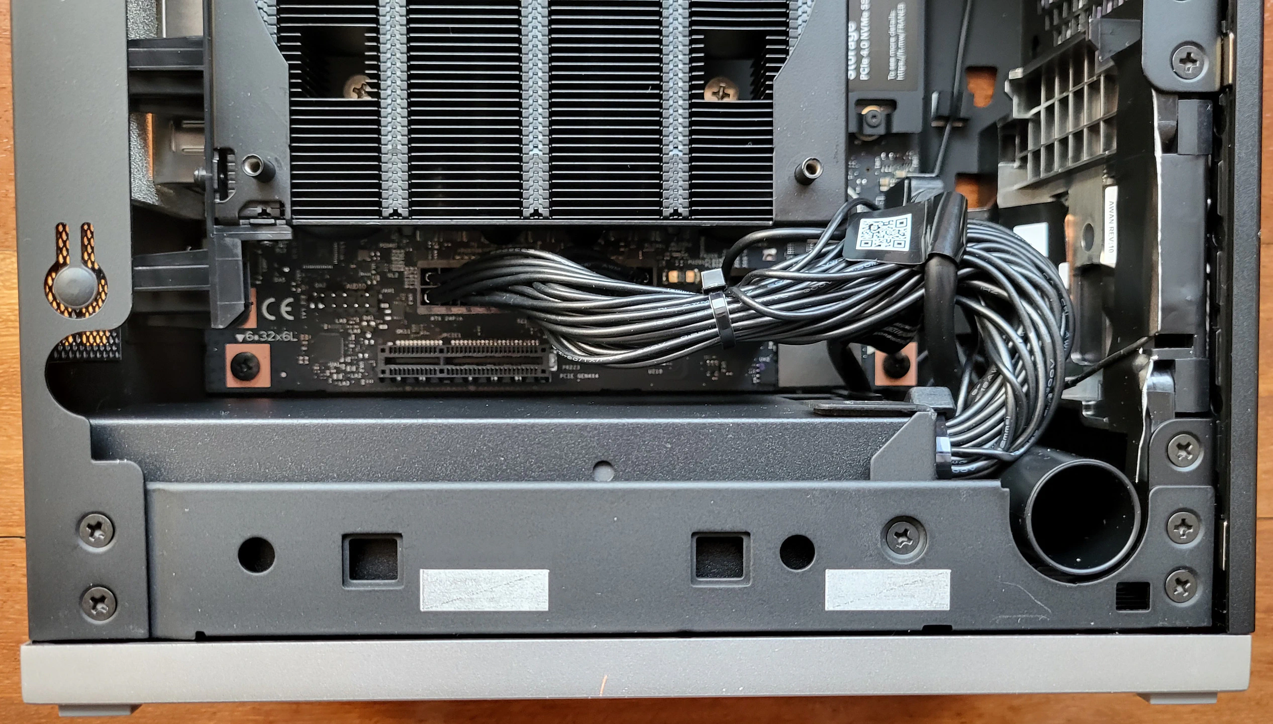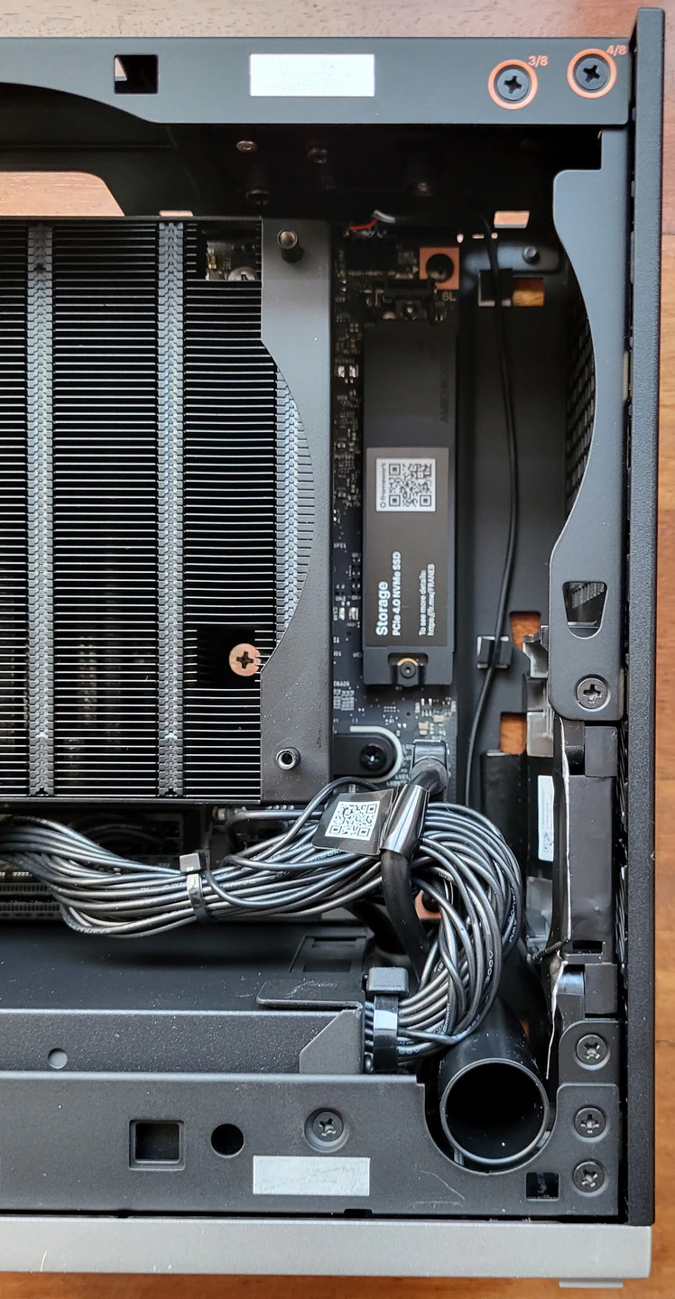 El interior del equipo es totalmente accesible, cosa que no ocurre en otras opciones. Poder acceder al ventilador, disipador y almacenamiento de forma fácil y sin hacer grandes desmontajes es algo que valoro, por ejemplo para mantener el equipo en condiciones óptimas y limpiar el polvo que se vaya acumulando con el tiempo. Esto es algo que no tienen otros equipos más compactos con el Strix Halo.
