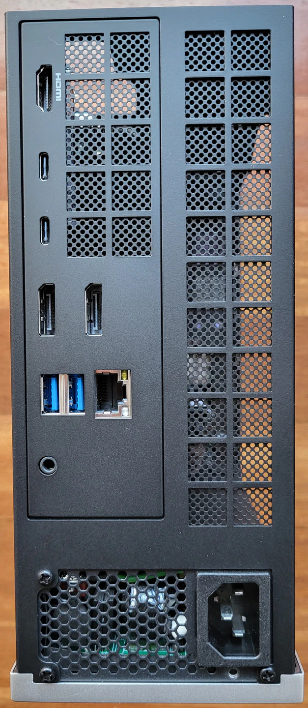 La fuente de alimentación de unos 400 W queda integrada en la caja, es una fuente de formato estándar SFX que podría ser sustituida por otra que cumpliese las necesidades del Strix Halo en cuanto a voltajes y amperajes.