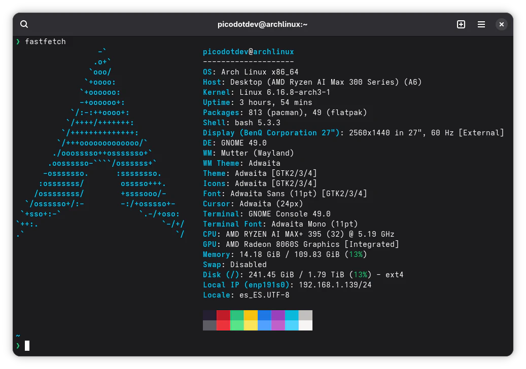 Si no fuera Arch Linux posiblemente instalaría Fedora Workstation. Pasados ocho meses sin tocar el script de instalación de Arch Linux dudaba de que siguiera funcionando, sin embargo, simplemente he cambiado algunos paquetes que parace no son ya necesarios y revisado la configuración para el driver de la gráfica AMD, ha funcionado correctamente.