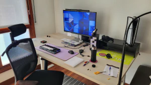 El monitor es un nuevo paso más en el cambio de ordenador, la mesa de escritorio elevable y cambiar de ubicación de la mesa de escritorio de mi habitación al salón. Con el paso del tiempo mi mesa de trabajo ha ido cambiando, en un primer momento con un portátil y sin monitor, luego con el estupendo Intel NUC con monitor y ahora con este Benq PD3226G y el Framework Desktop.