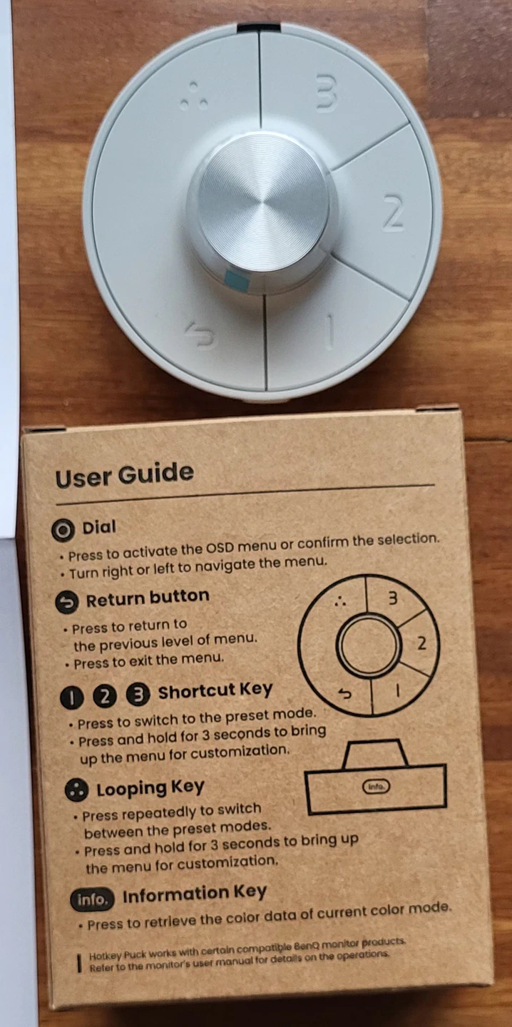 El monitor ofrece otras características como un puck inalámbrico para configurar el monitor y cambiar algunas opciones, mucho más cómodo que los botones integrados en el monitor. Ofrece un puerto de carga thunderbolt 4 capaz de entregar energía de 90 W lo que permite un solo cable entre el monitor y el portátil además de daisy chain para conectar dos minitores con un solo cable, tiene la característica de KVM para controlar varios equipos con un solo teclado y ratón, dispone de FreeSync para juegos y HDR que ofrece una mayor luminosidad, los blancos y colores son más luminosos. Para el MacBook en vez de un dock station HP que no reconoce bien la resolución del monitor usaré el cable de thunderbolt 4 con el que si reconoce bien la resolución aunque no la frecuencia que se queda solo en 100 Hz en vez de los 144 Hz de los que es capaz el monitor.