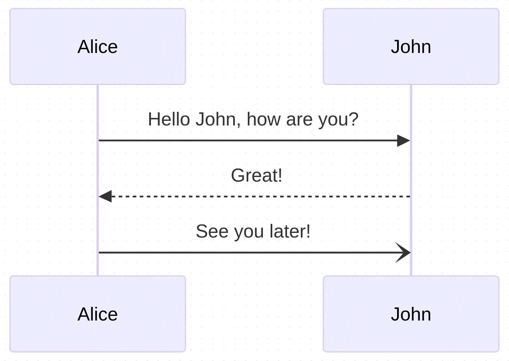 Mermaid se encarga de alinear y establecer la disposición de los elementos automáticamente para que se visualicen correctamente. Al crear digramas con un formato de texto obtenemos el mismo beneficio que el código fuente al incorporarlo a un sistema de control de versiones como Git. Ver claramente las diferencias entre las diferentes versiones y menos espacio ocupado en el repositorio.