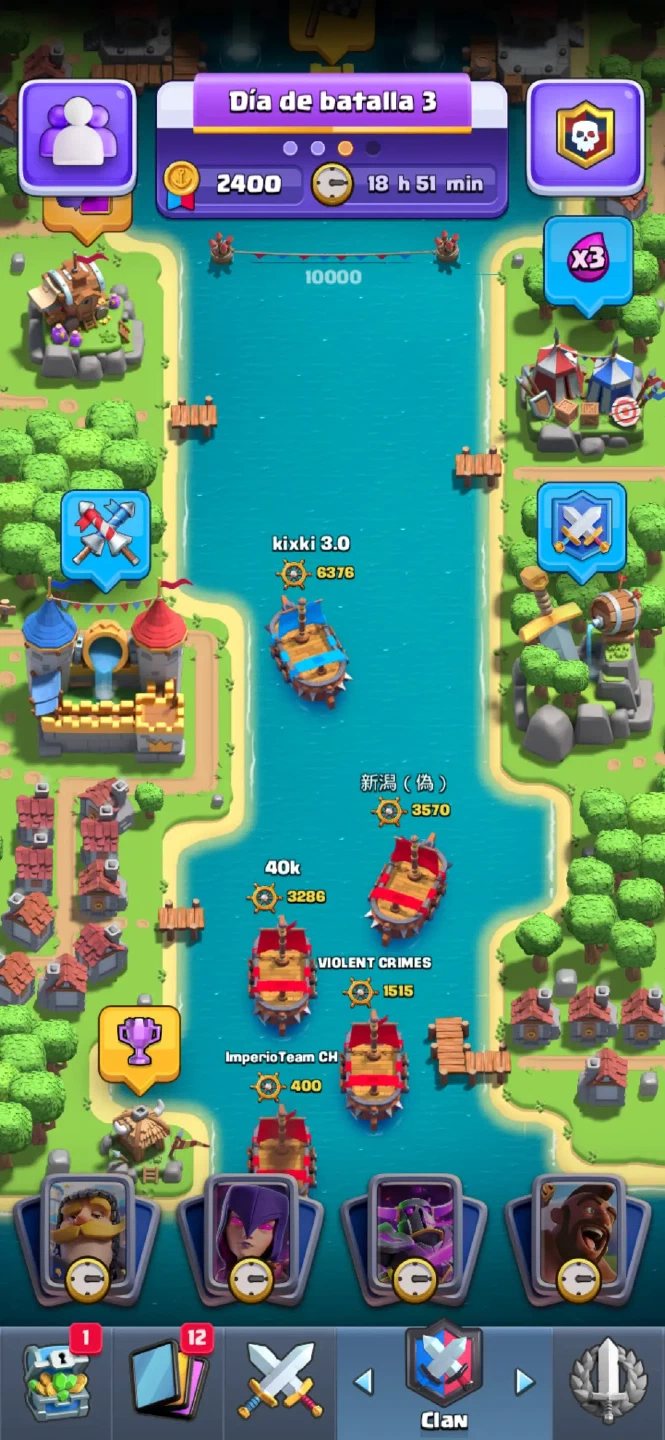 - Carrera del río: cada día el clan consiguen puntos, al final del día