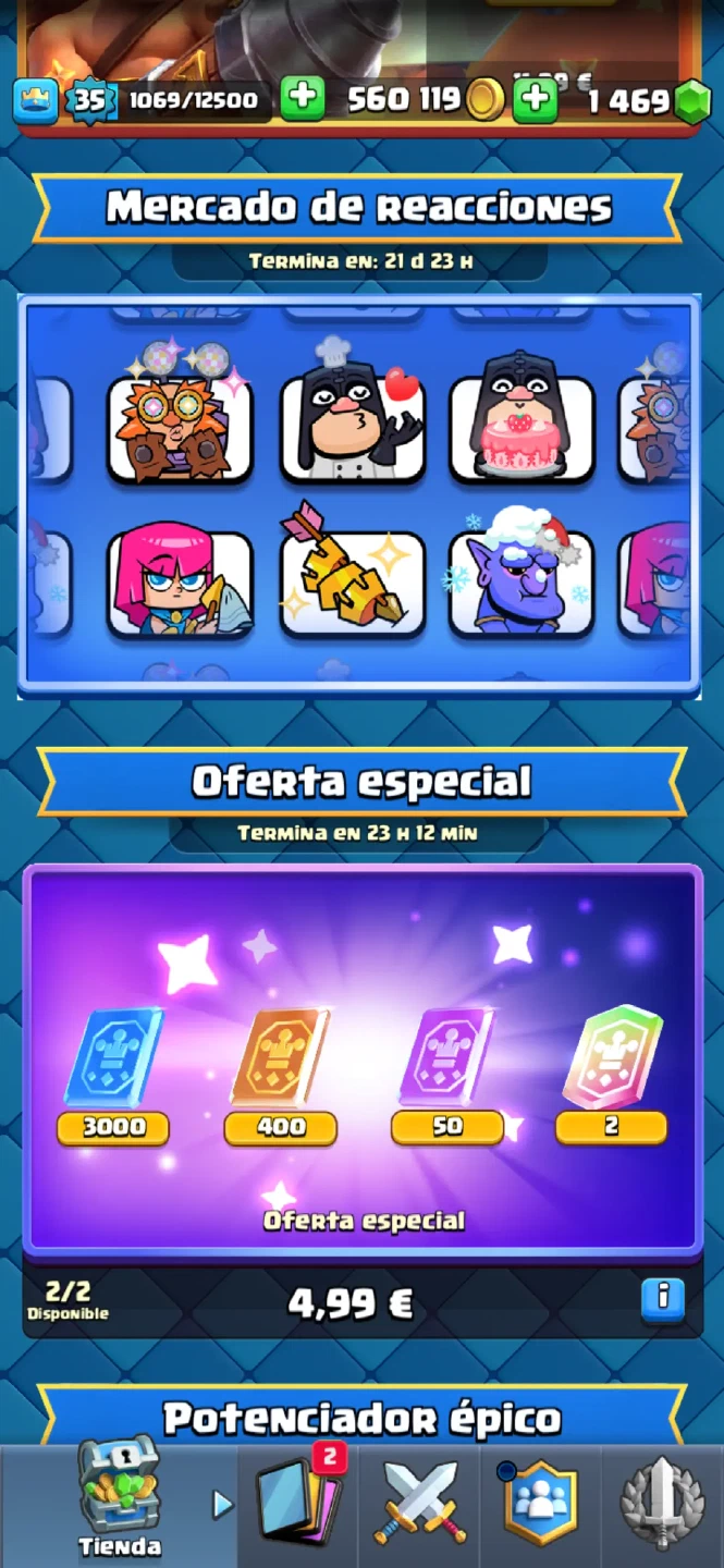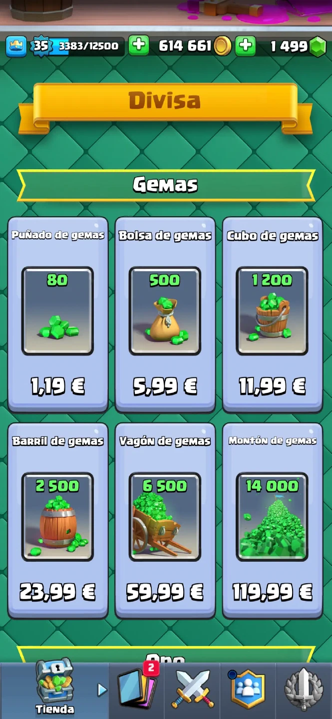 Los oro y las gemas se pueden adquirir con dinero real en la tienda. Aquí es donde el modelo free-to-play termina y comienza el pay-to-win: el juego es técnicamente gratuito, pero quienes invierten dinero tienen un acceso privilegiado a mazos más fuertes, lo que genera una brecha entre jugadores que pagan y jugadores que no.